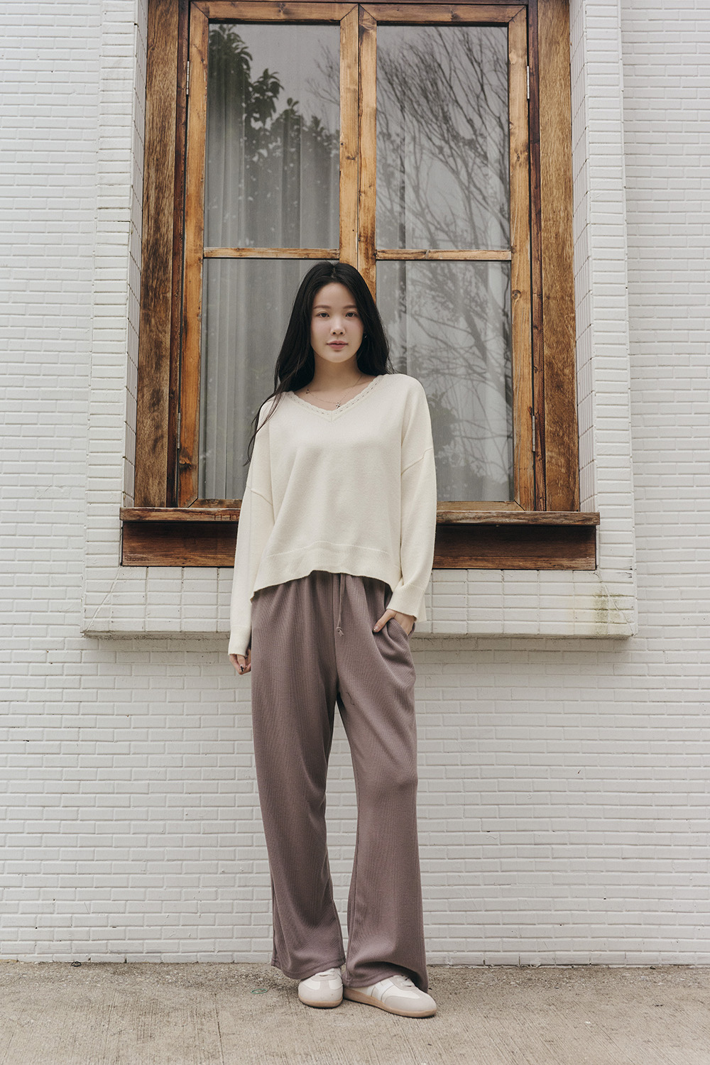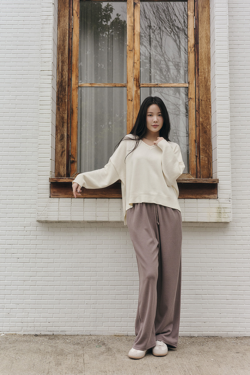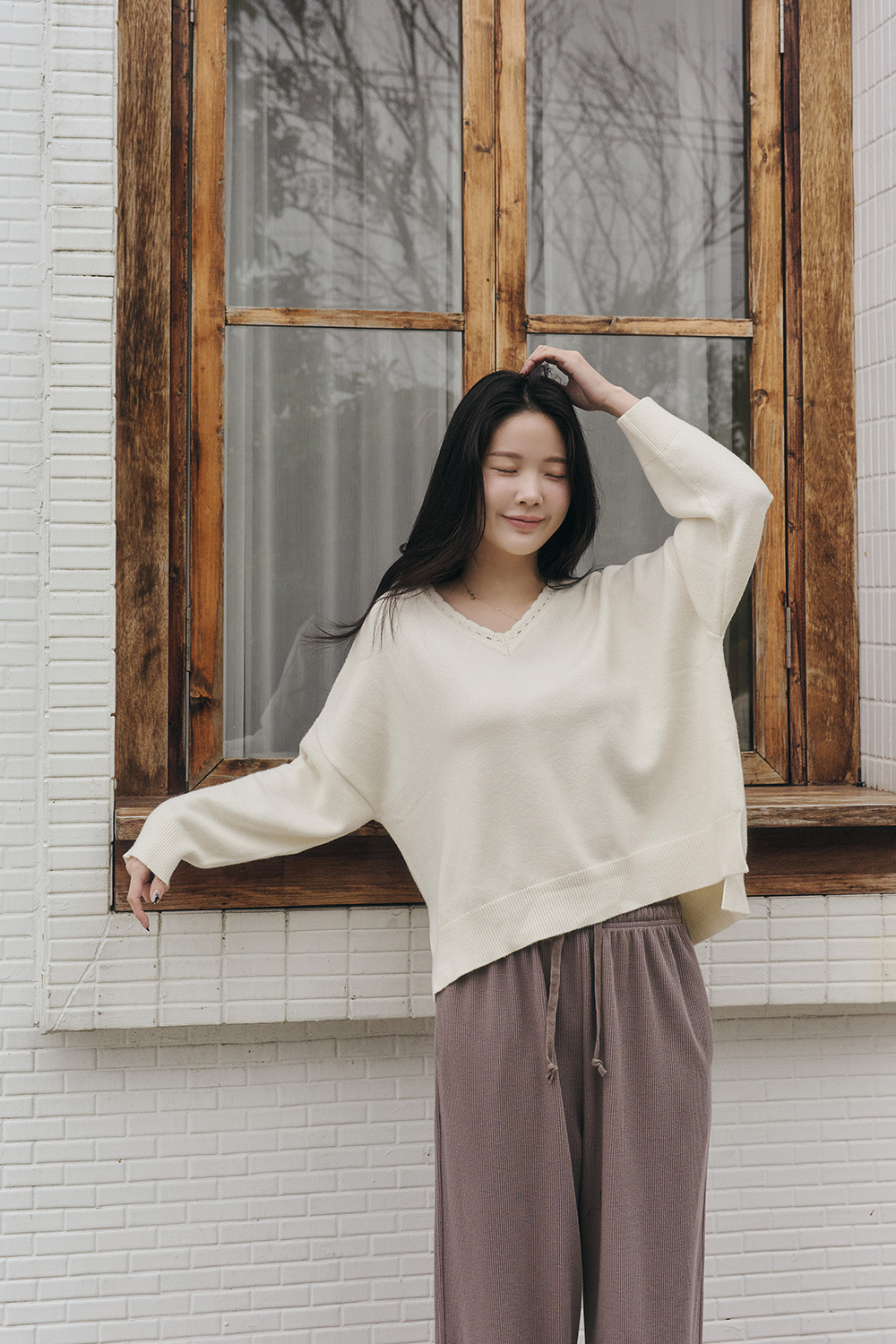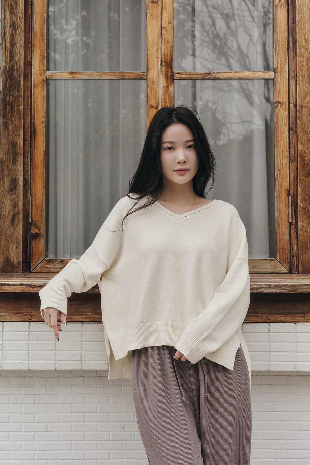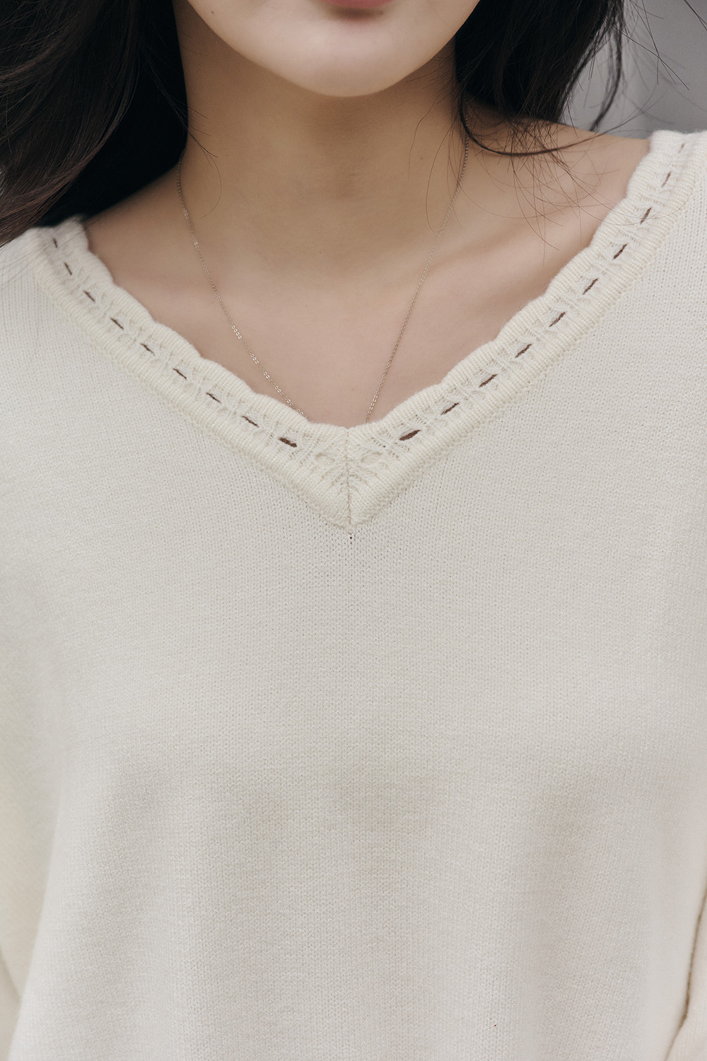 HEALER Made 花邊天天針織 V領側開衩針織毛衣