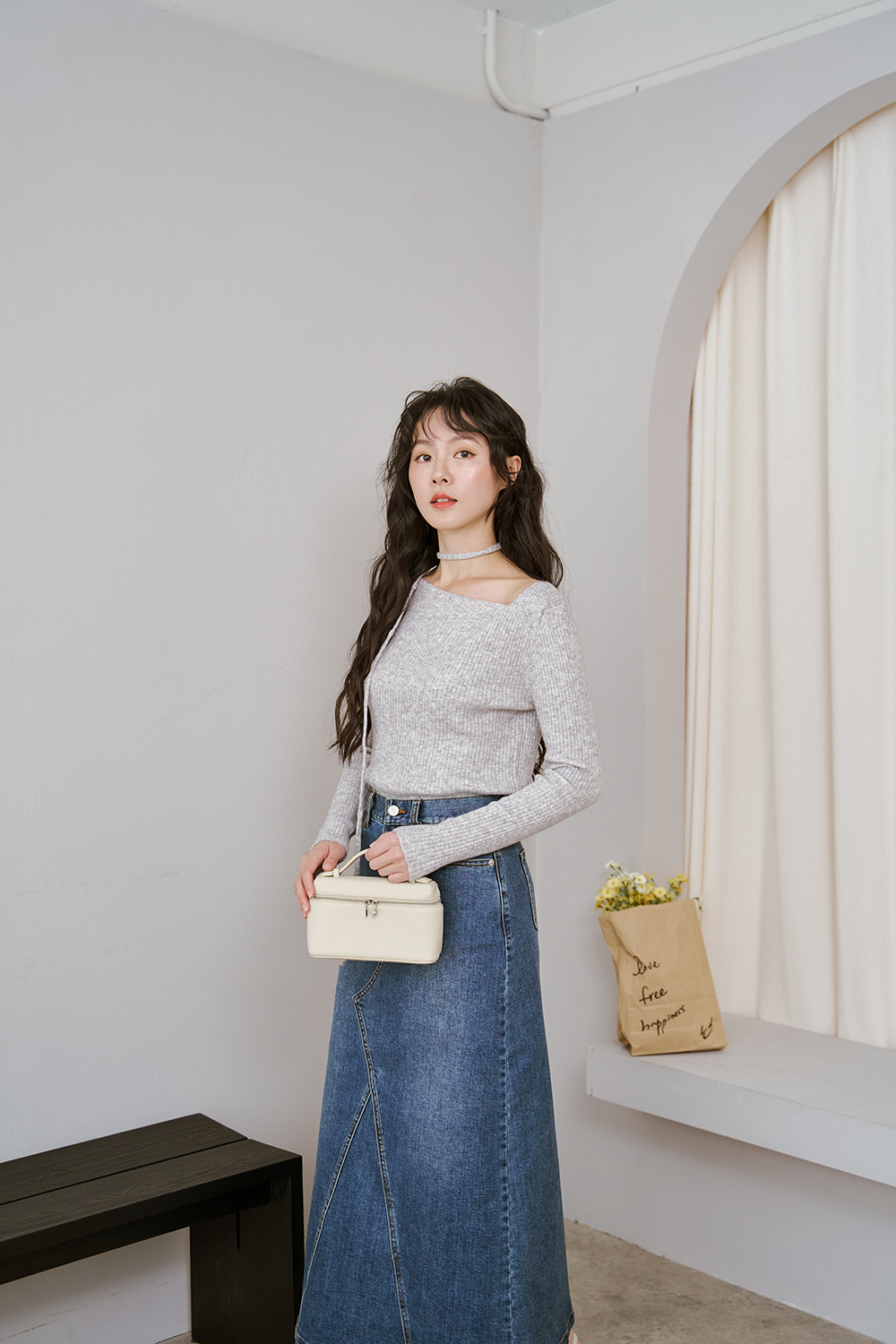 不對稱斜領很有設計感又可以微露鎖骨