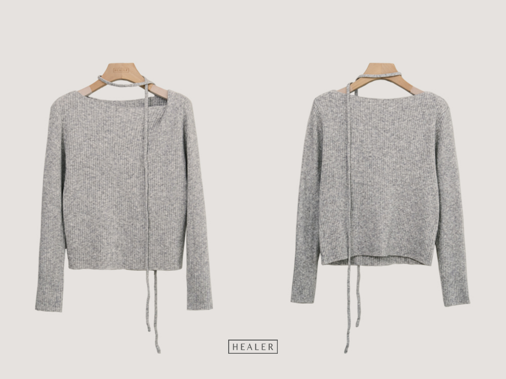 HEALER Made 週年紀念日 斜領綁帶針織上衣