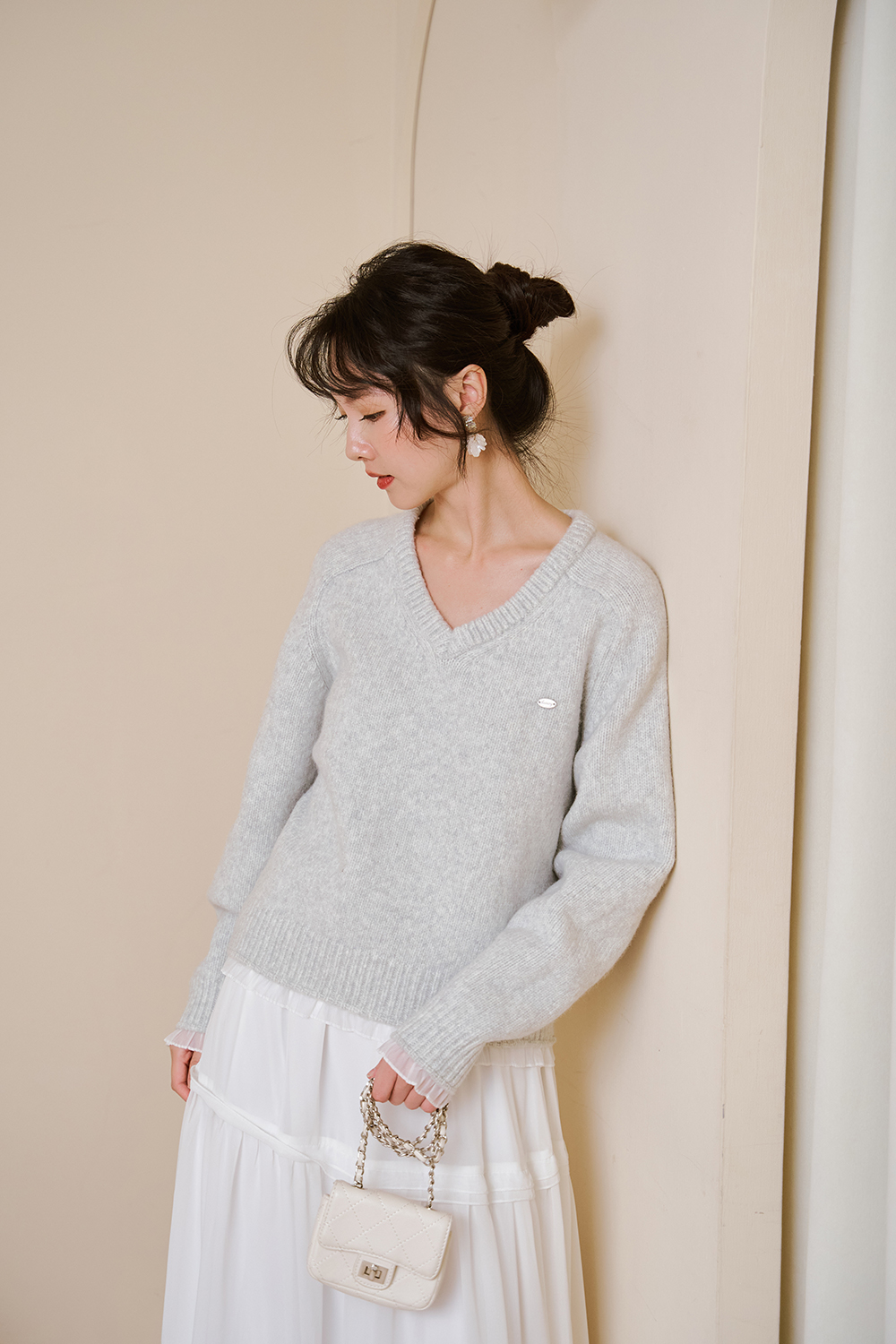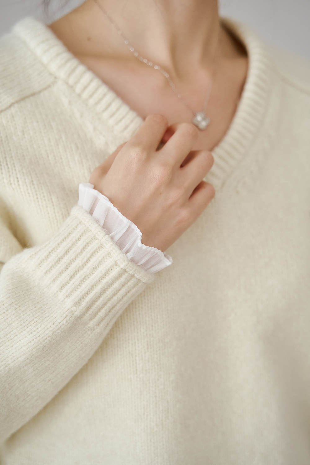 童話夢境 V領雪紡滾邊針織毛衣 童話夢境 V領雪紡滾邊針織毛衣