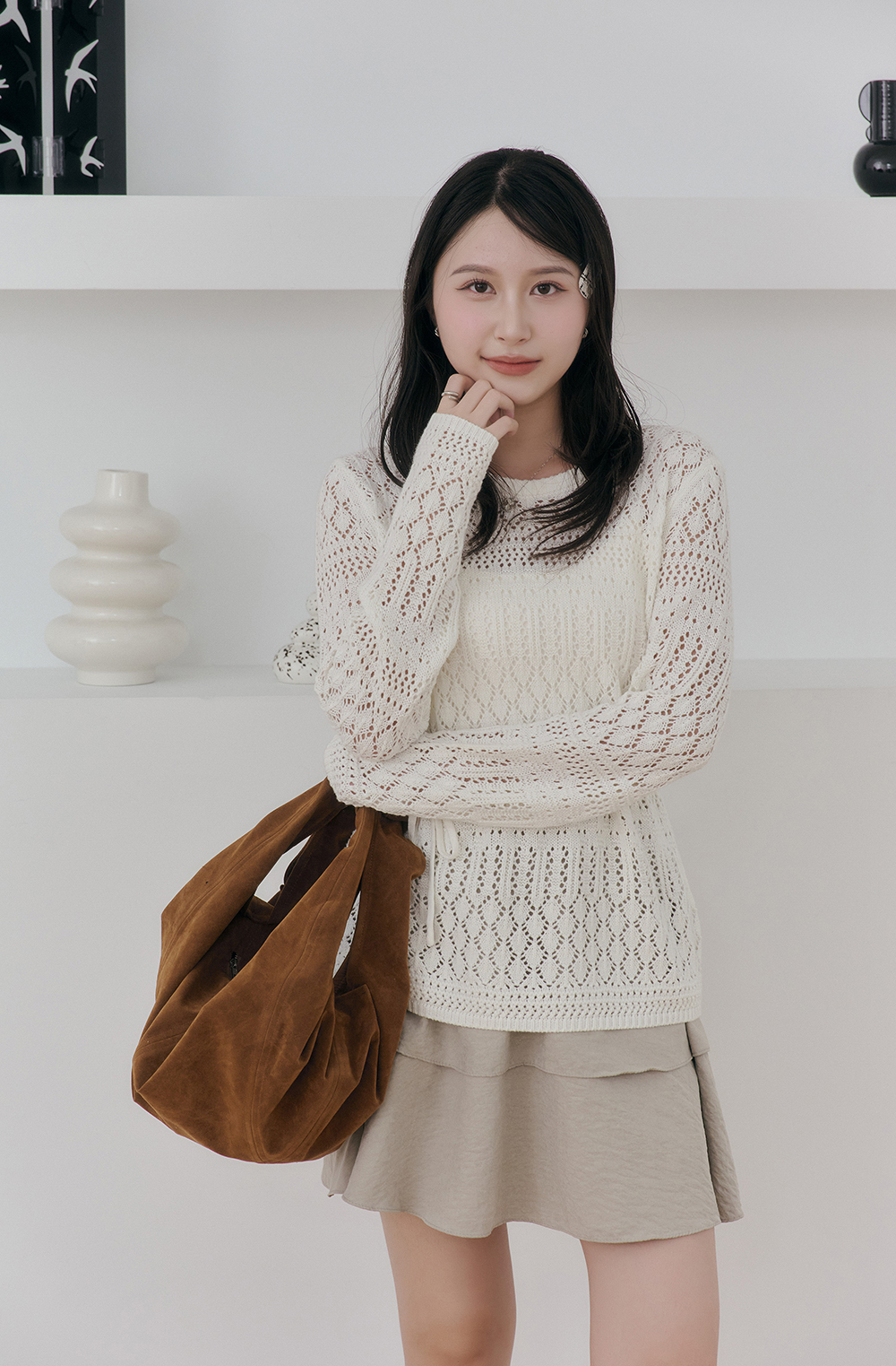 捕夢網 簍空鉤花針織衫