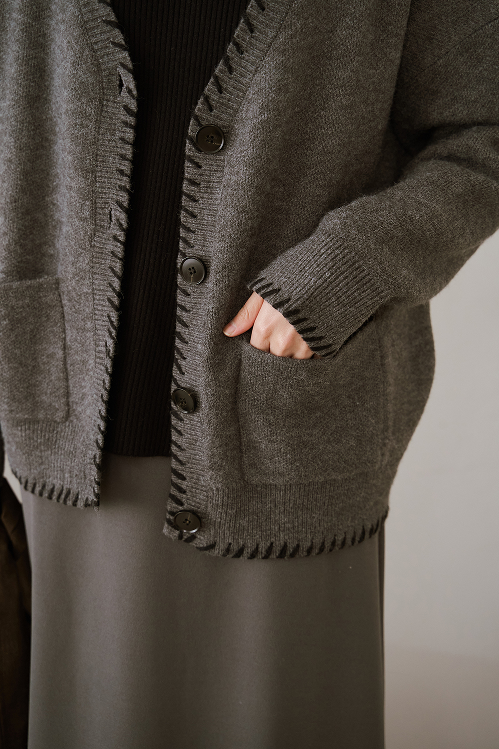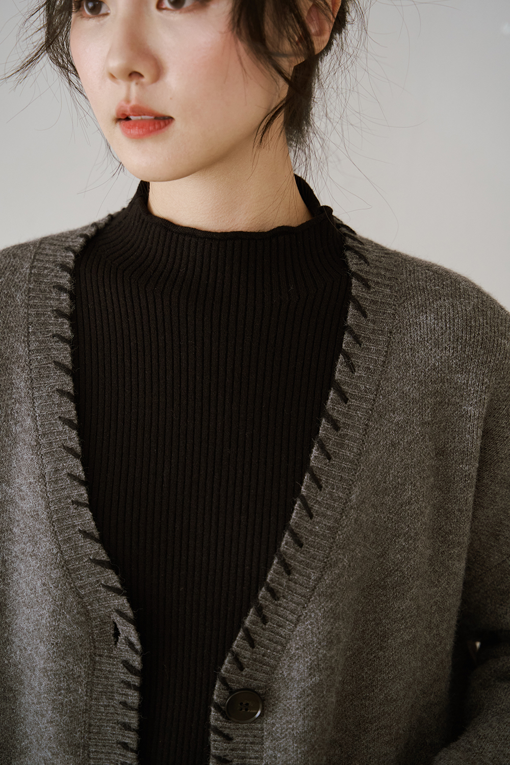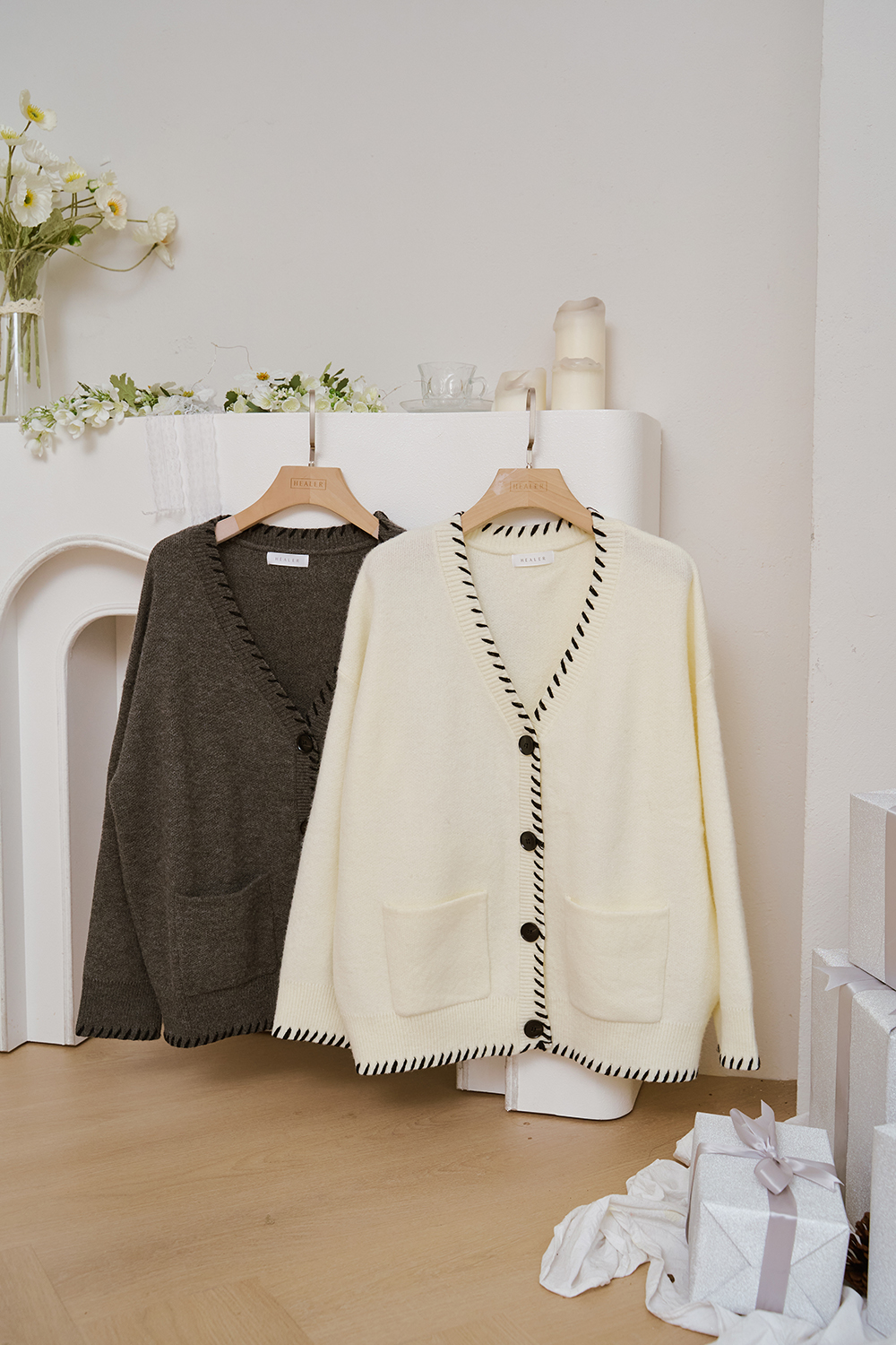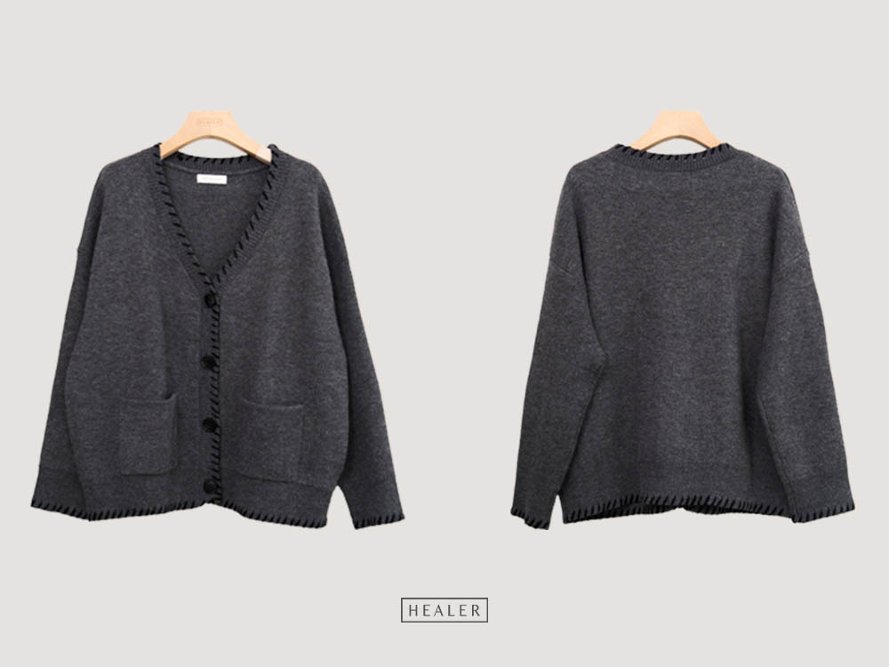 HEALER Made 手織的溫度 滾邊縫線V領針織外套