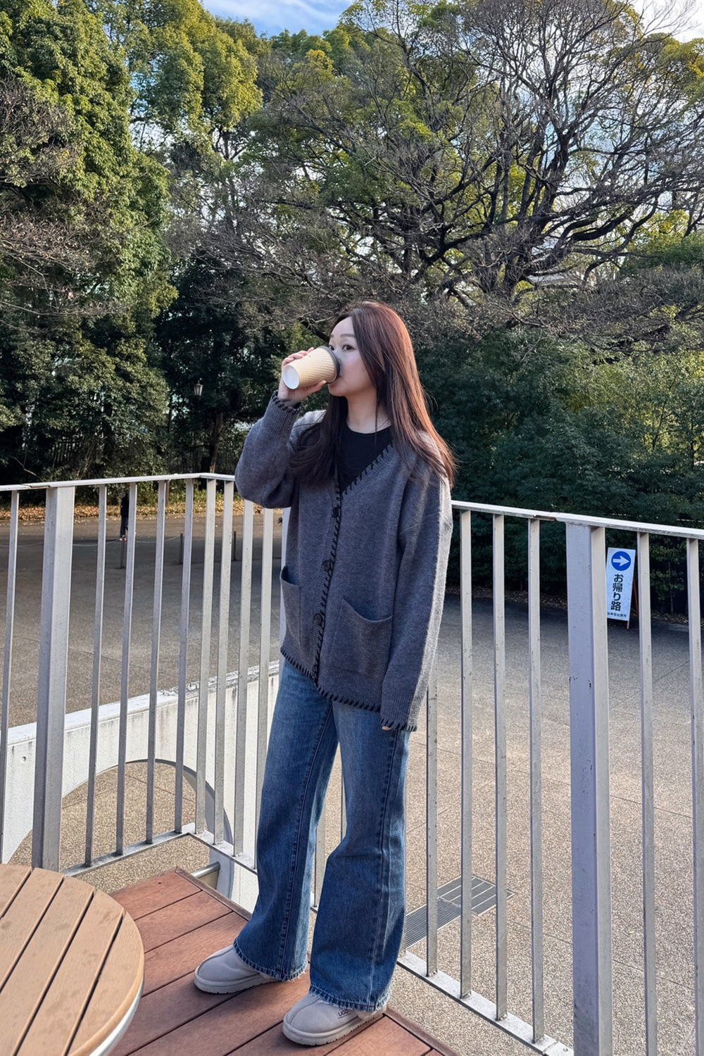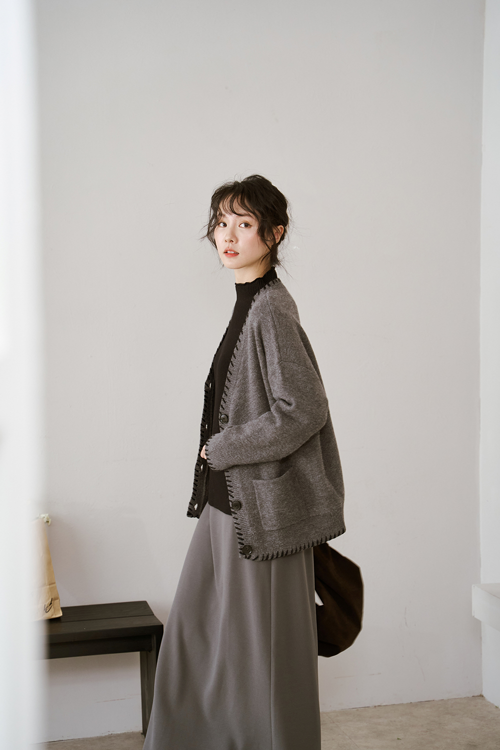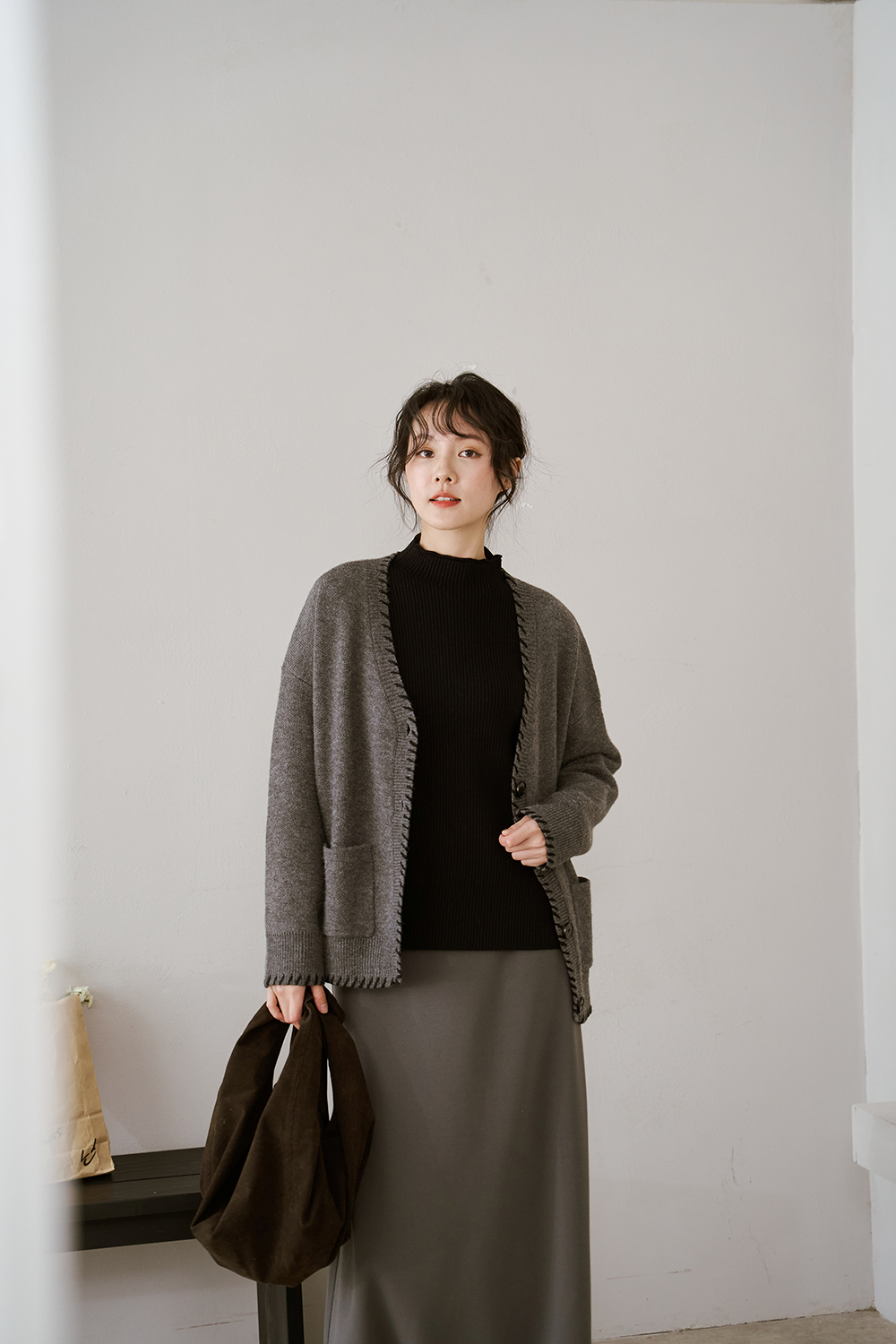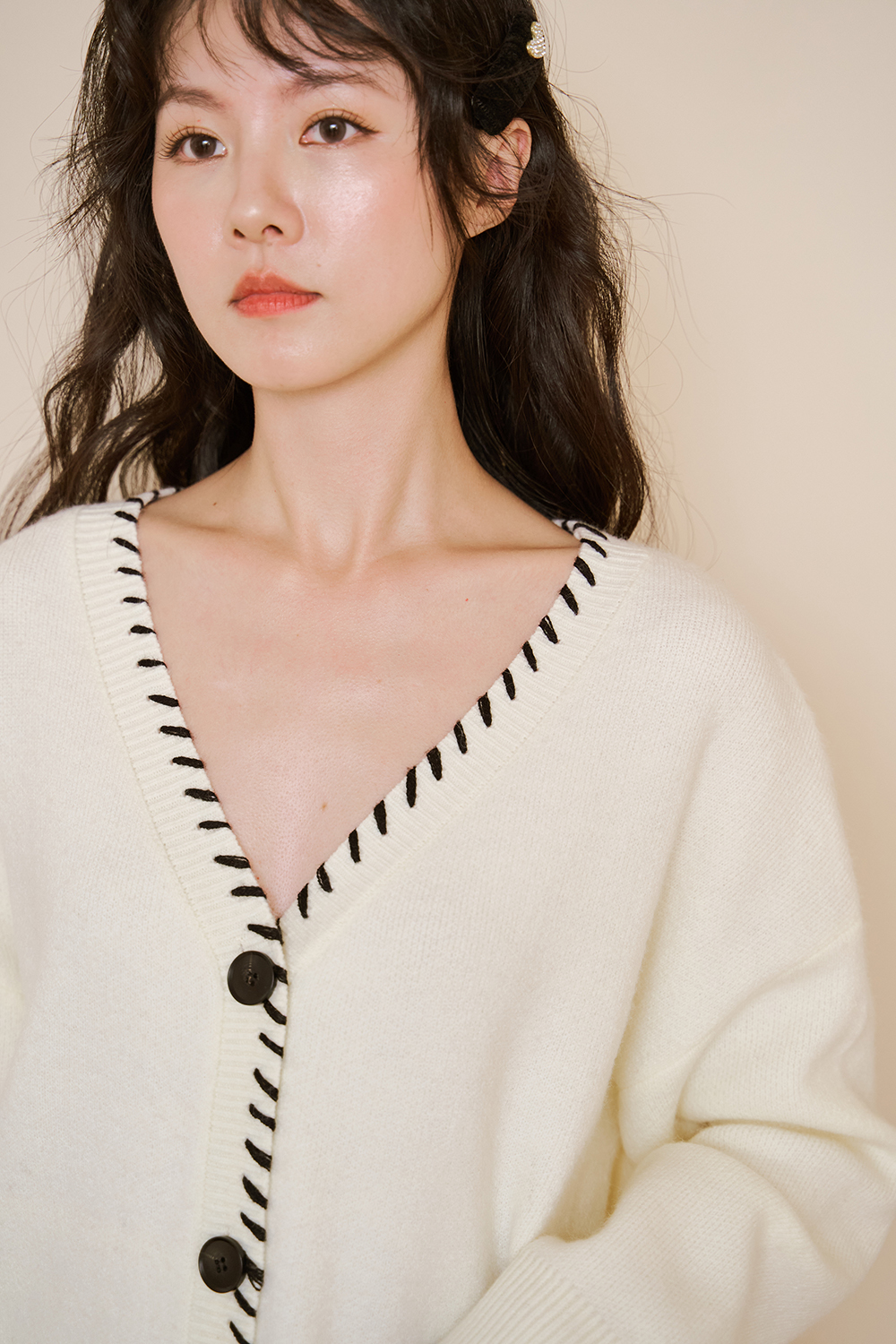 HEALER Made 手織的溫度 滾邊縫線V領針織外套