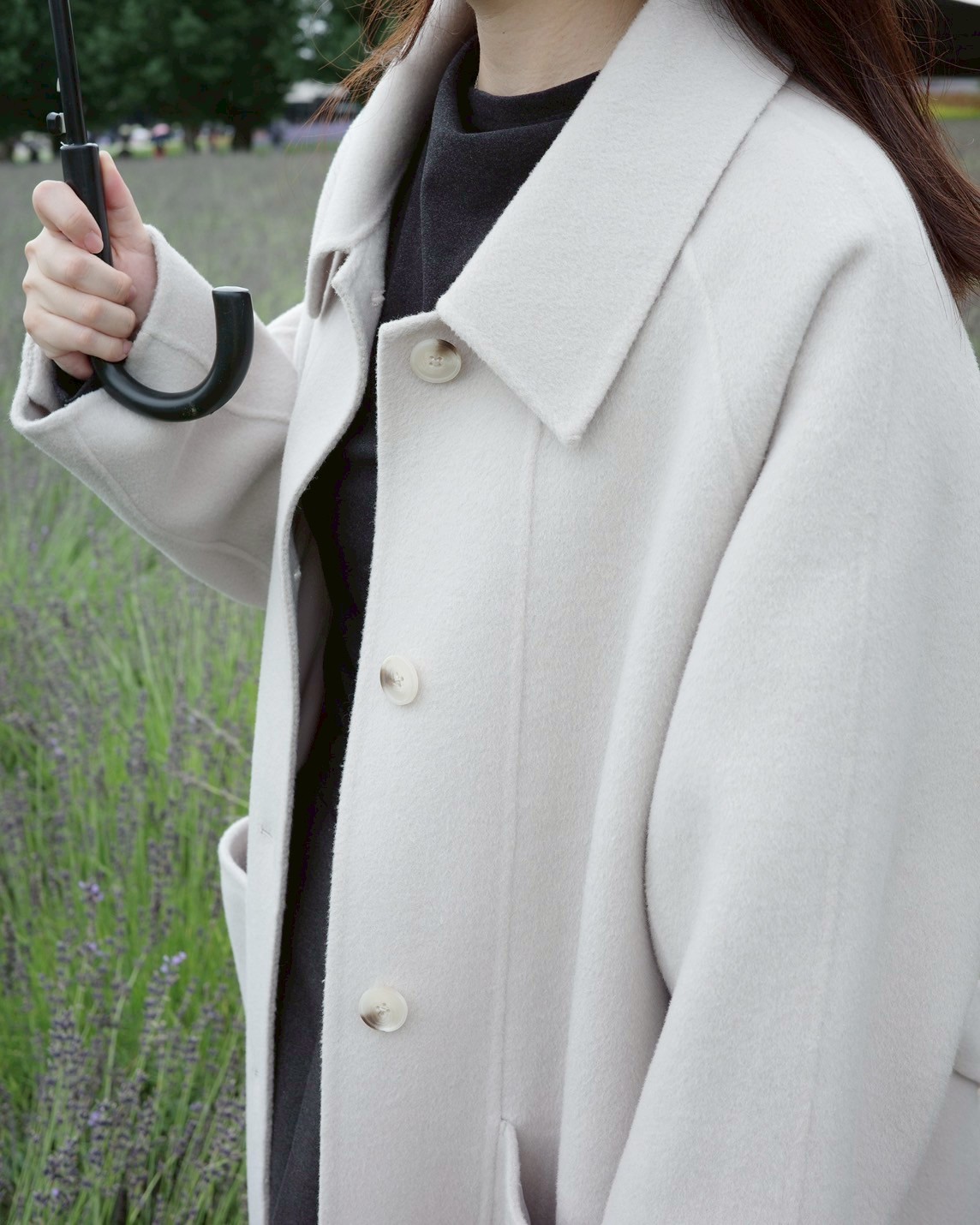 HEALER Made 薰衣草戀人 100%羊毛綁帶雙口袋翻領長大衣