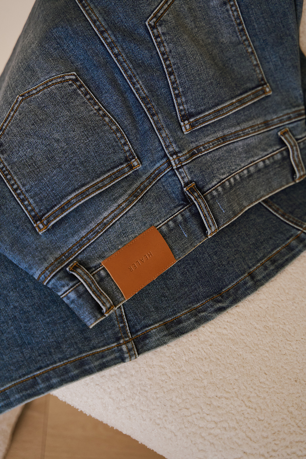 4、反面陰乾可避免紫外線破壞牛仔原有色澤顏色隨著洗滌次數越多,會有變淺的情況,屬正常現象。