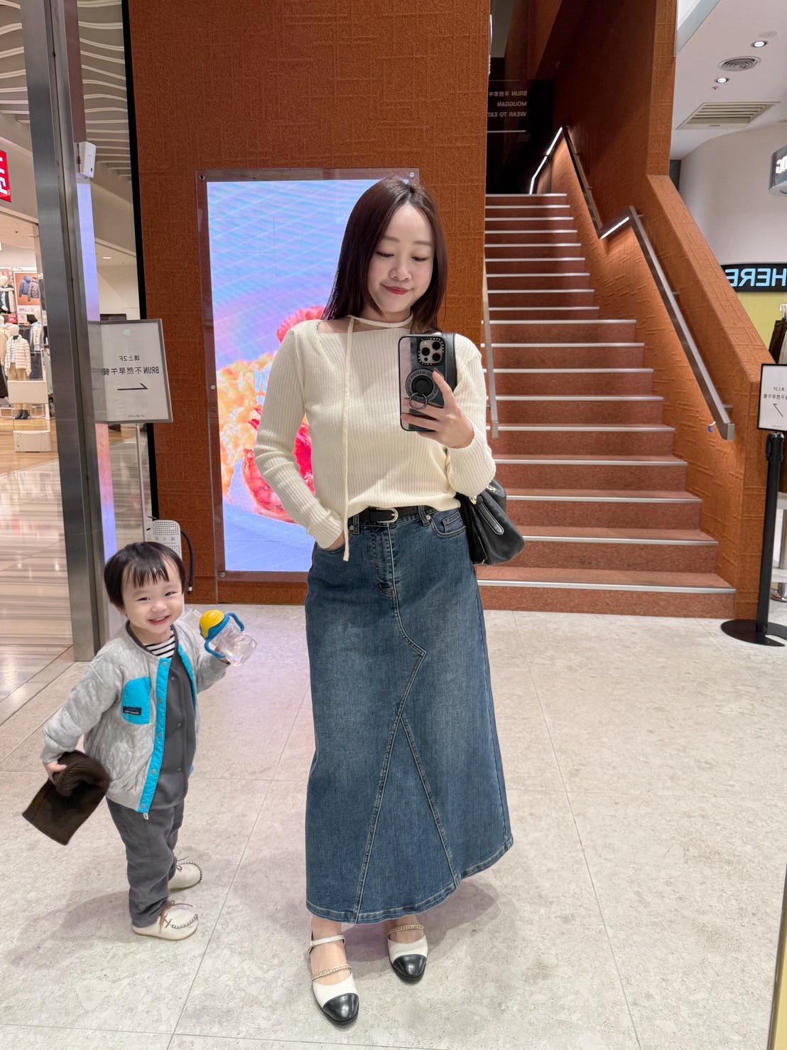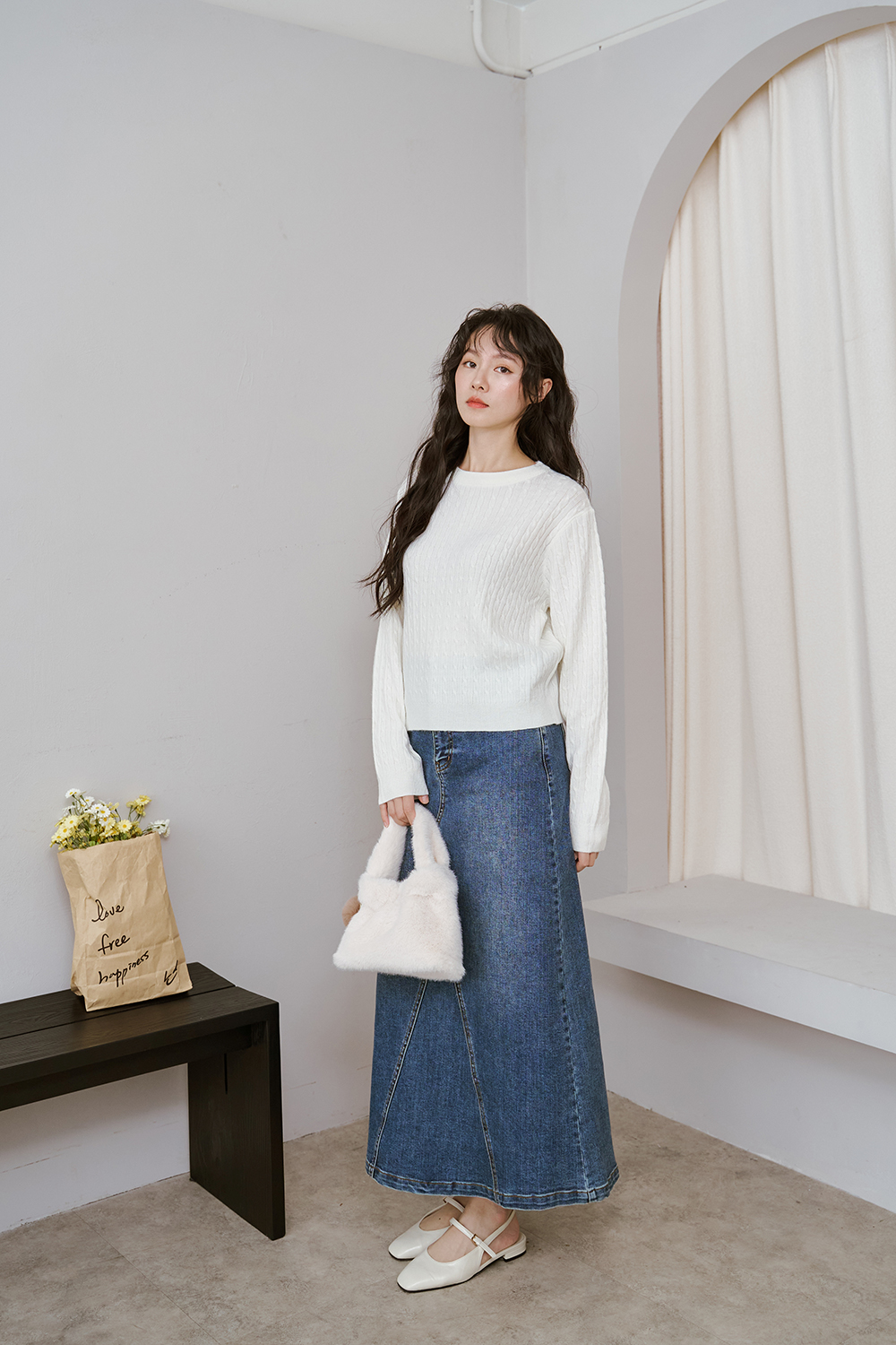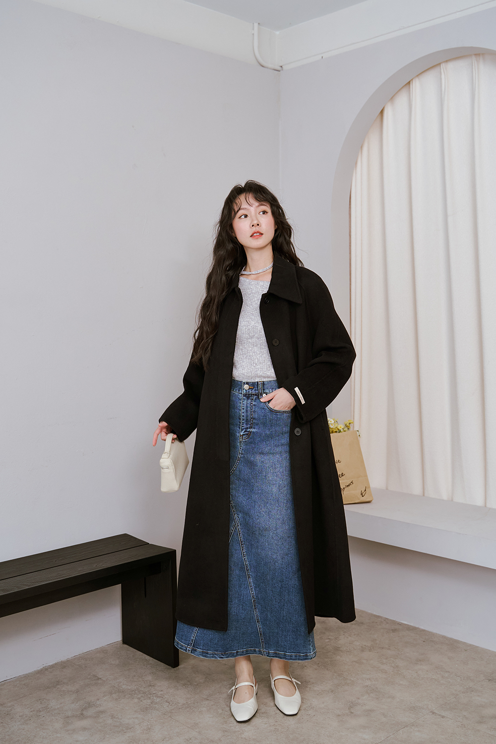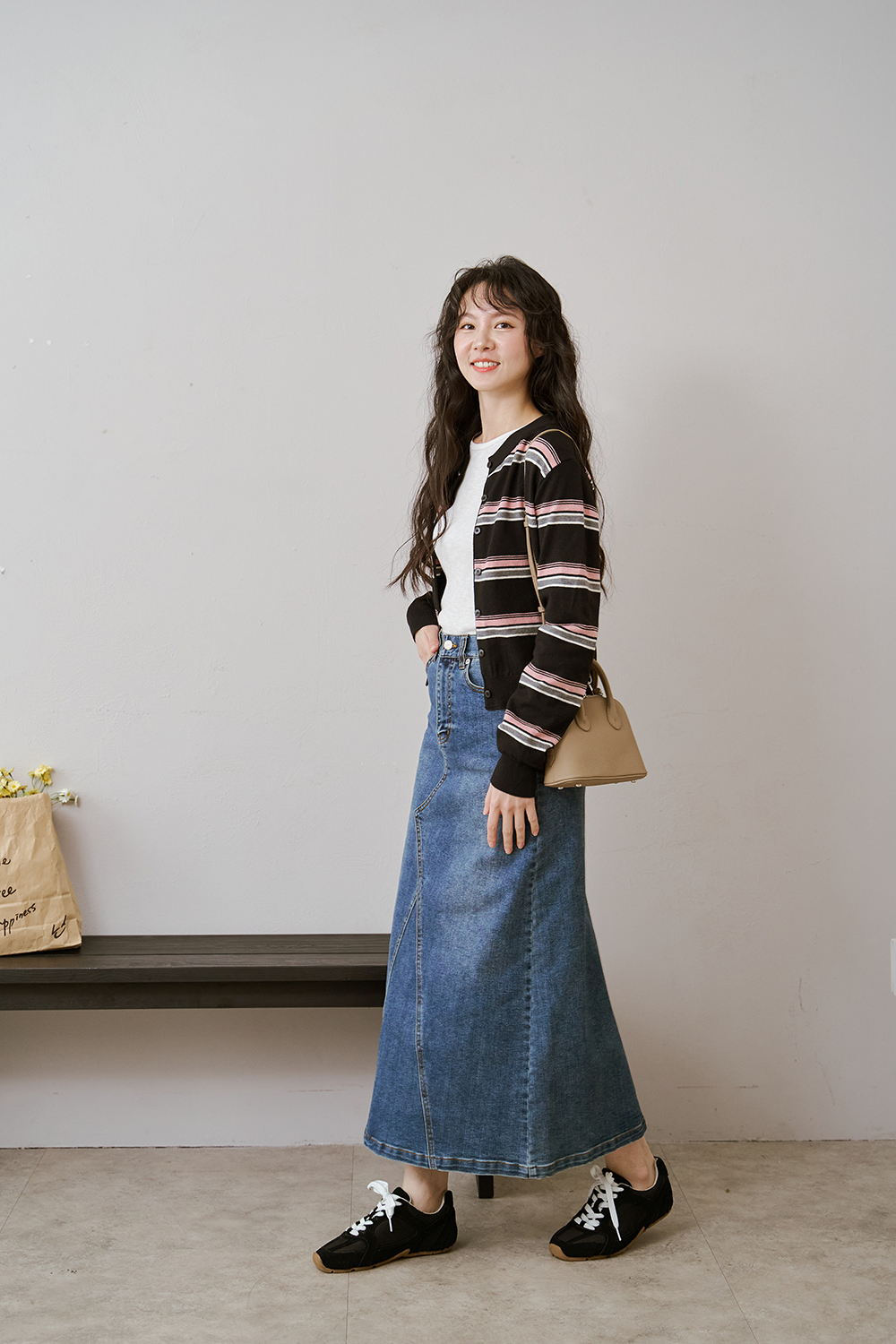 就跟牛仔褲一樣好配但長裙配起來又比較有女人味