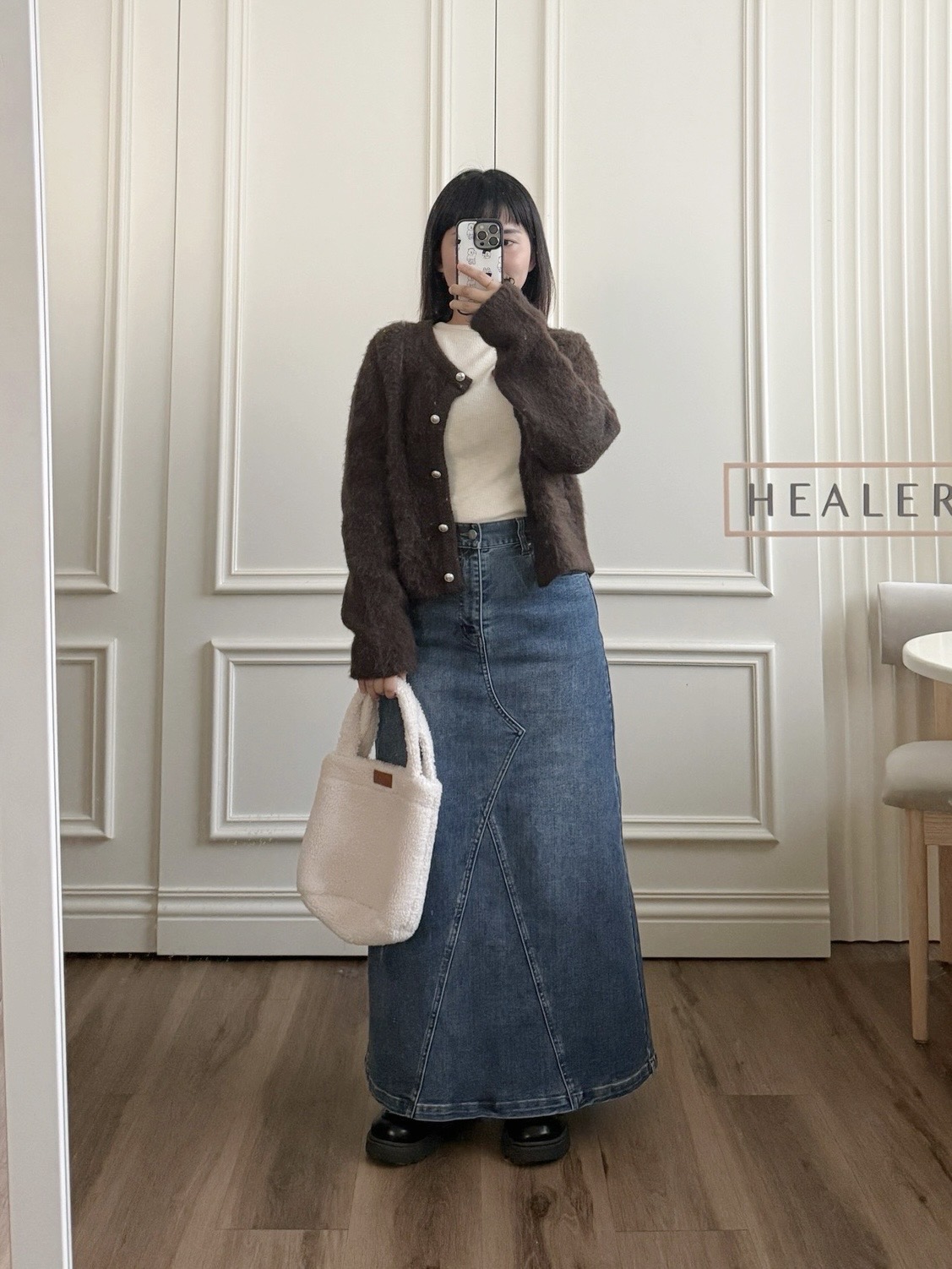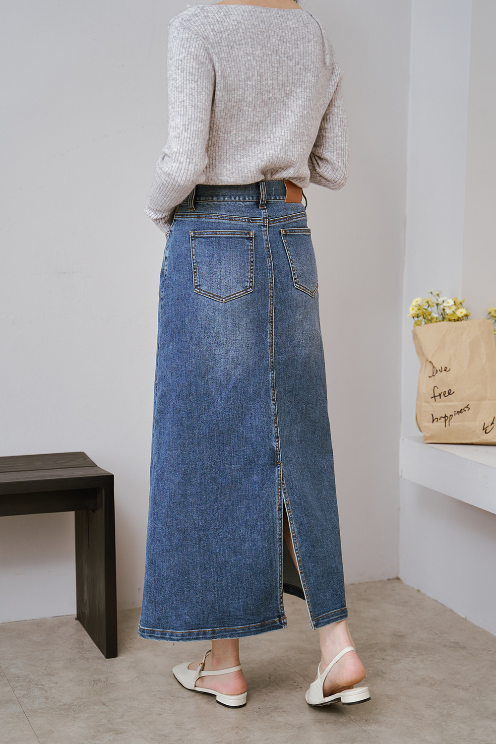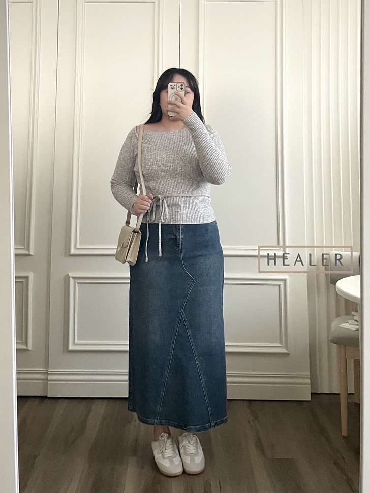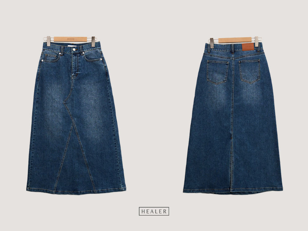 HEALER Made 年末摯愛 水洗感開衩牛仔長裙