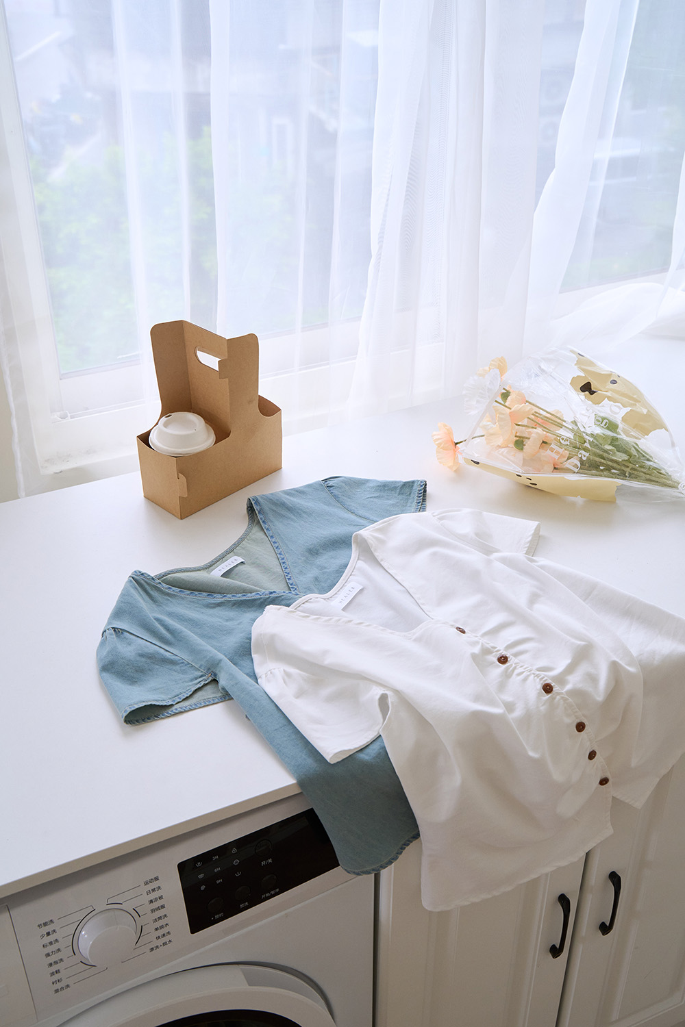 ✦材質成分:牛仔:90%棉 10%聚酯纖維 白:80%棉 20%聚酯纖維