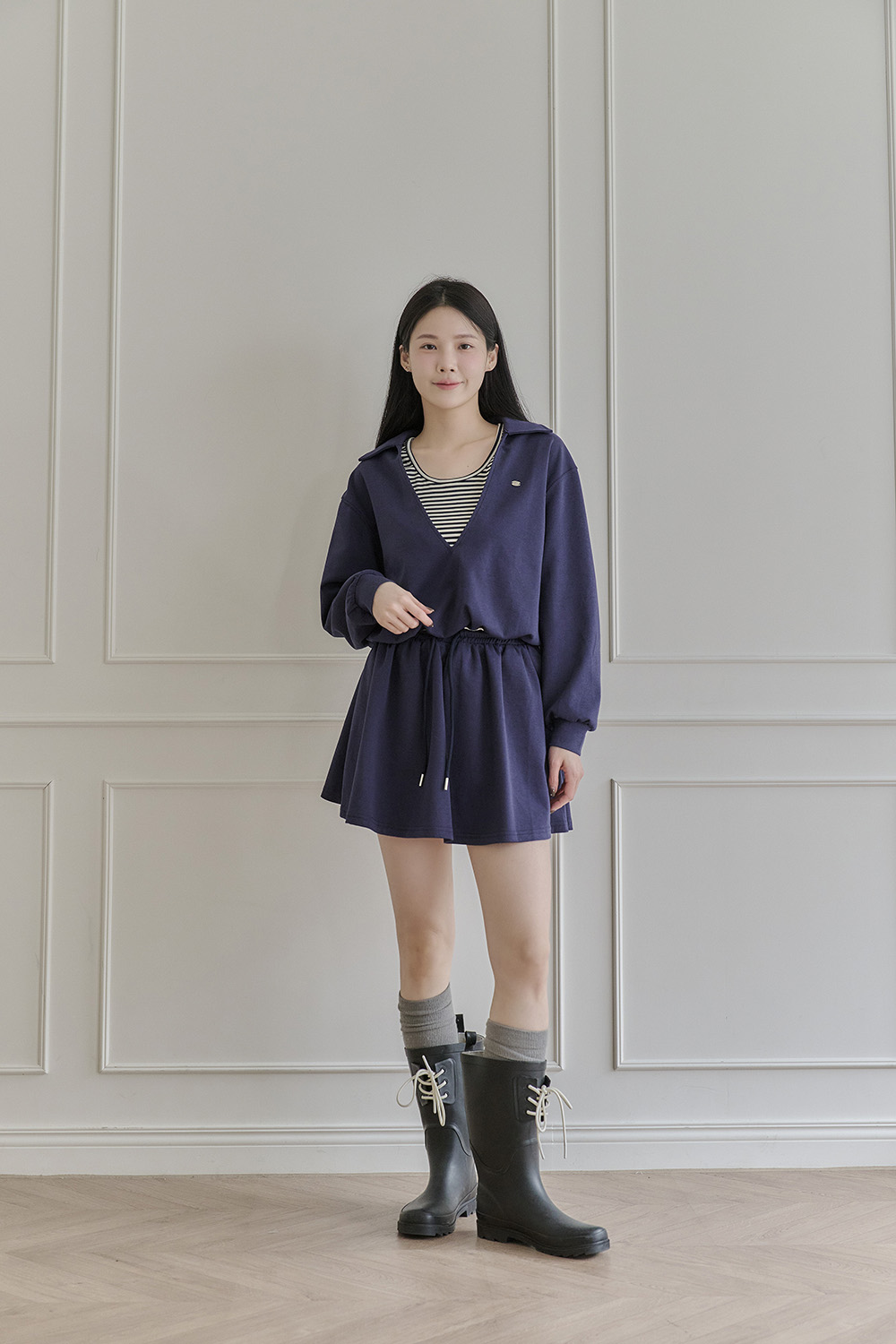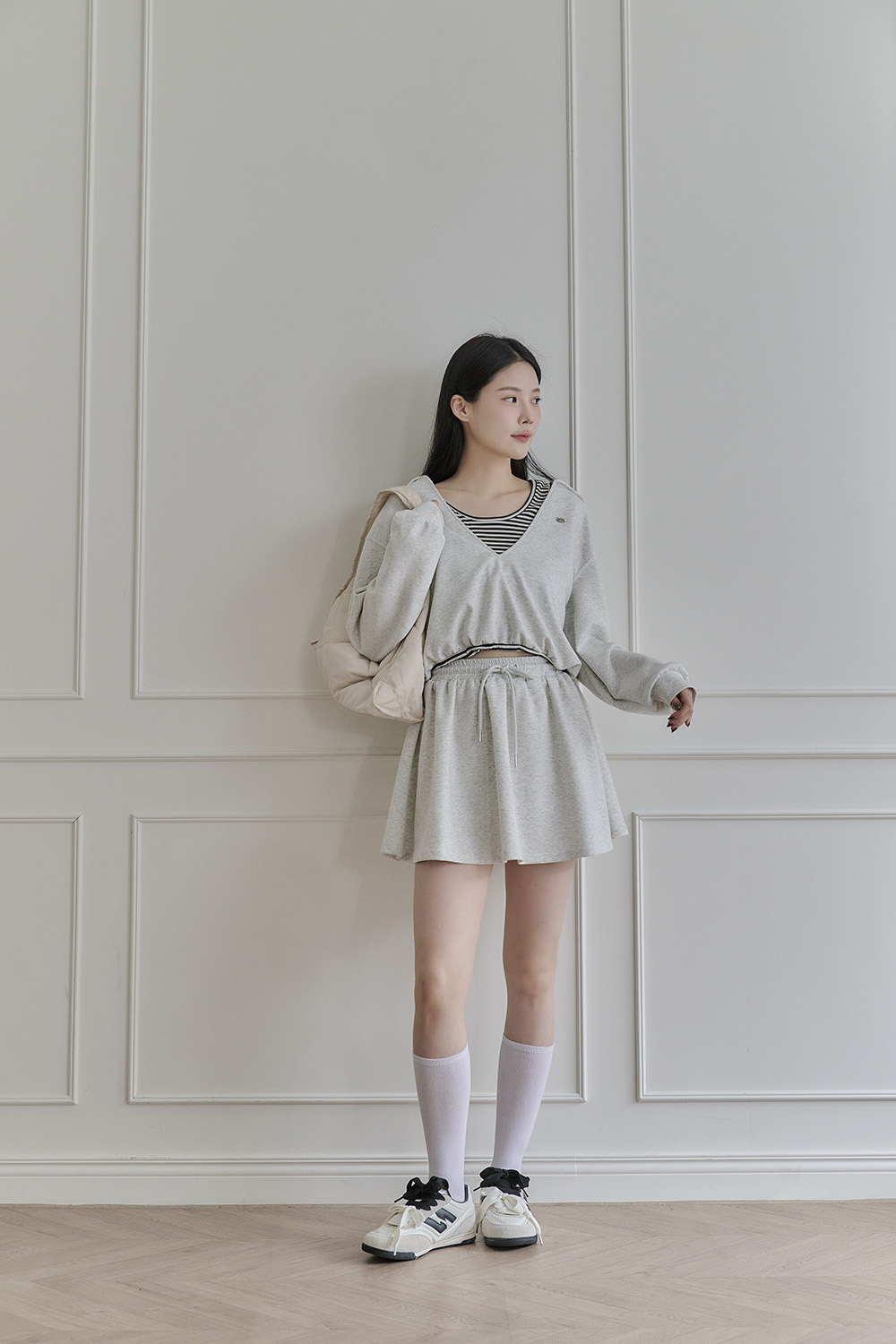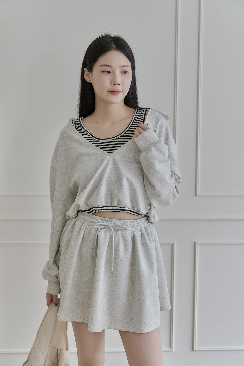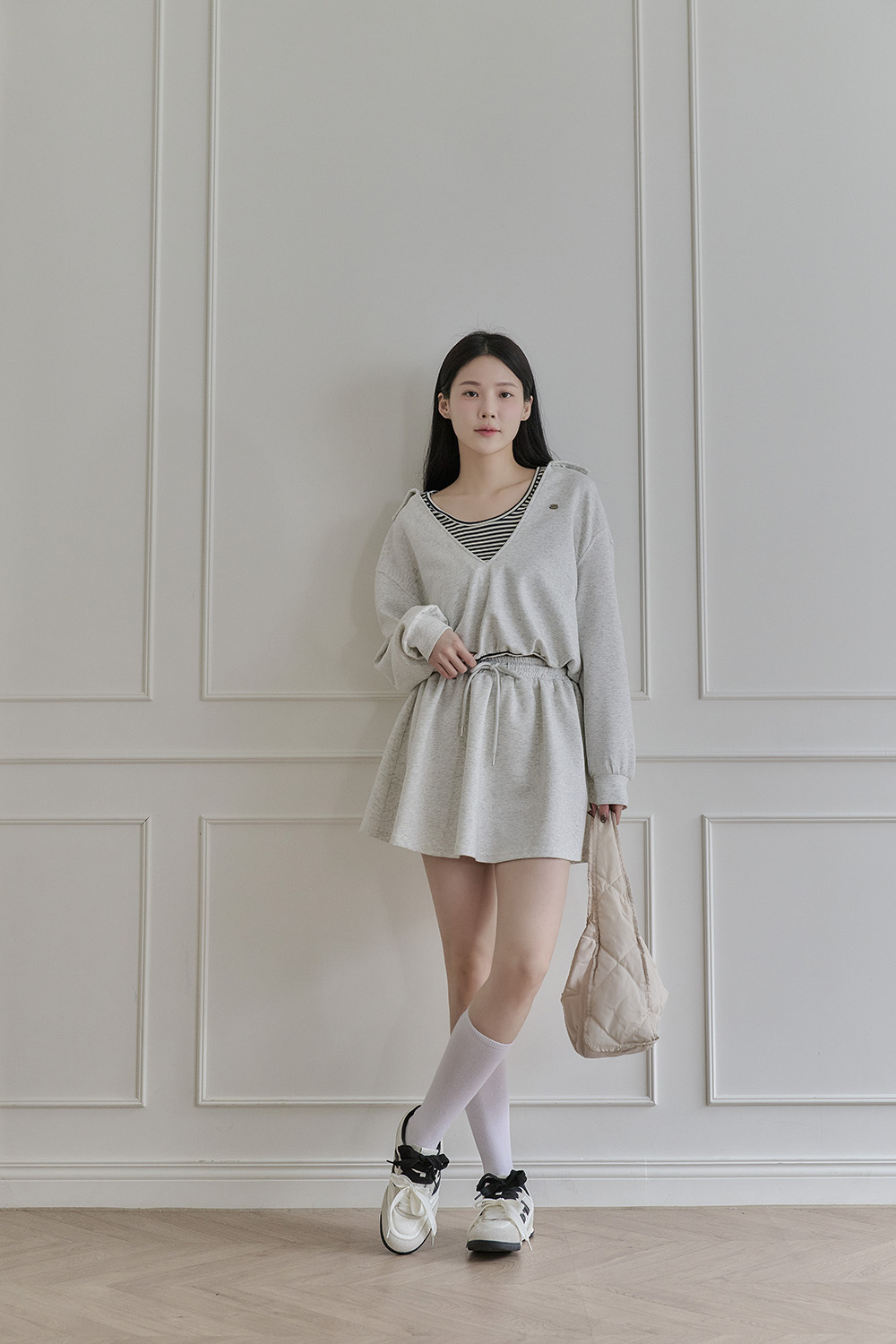 自在鬆弛感 假兩件式大V翻領上衣+短褲裙套裝