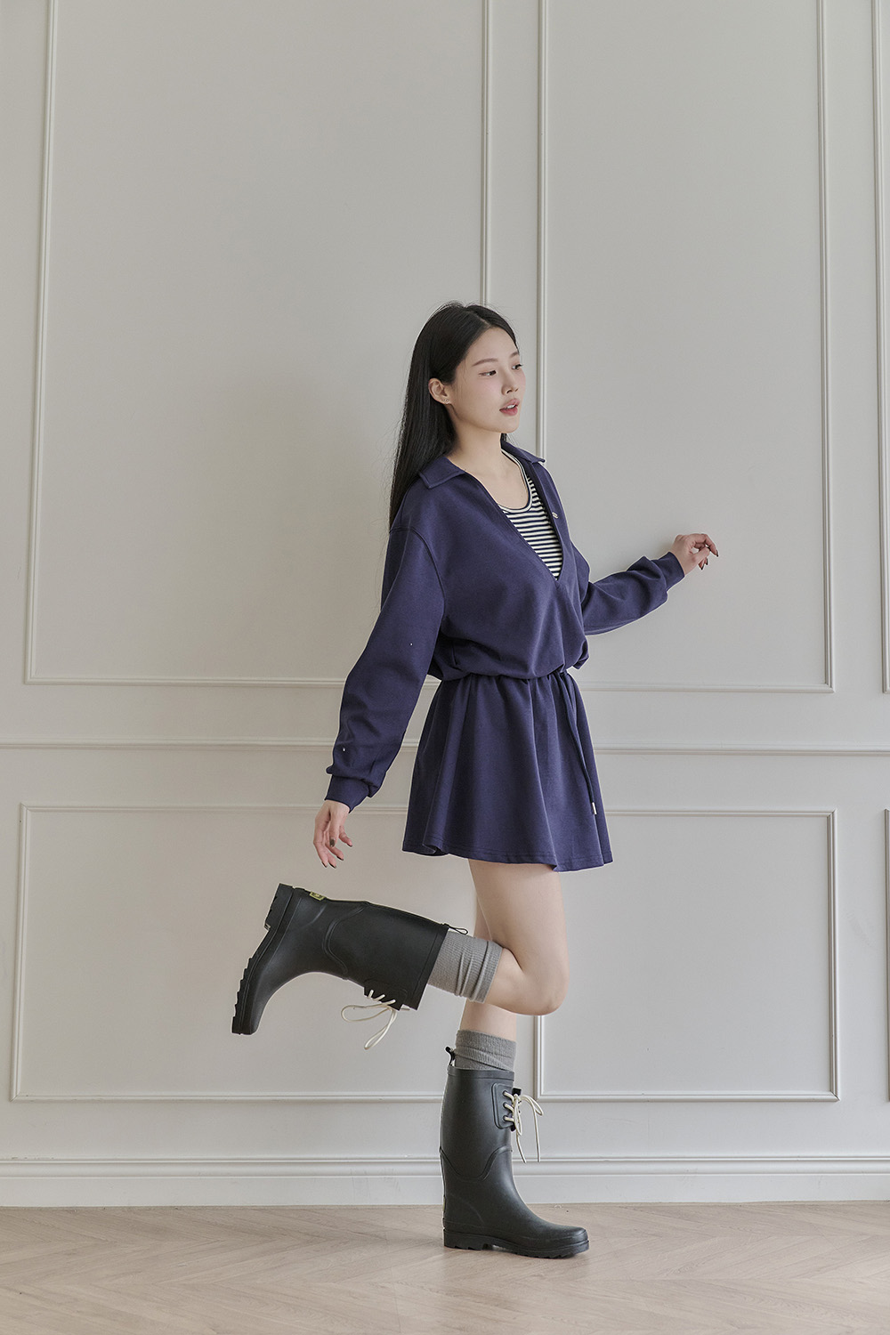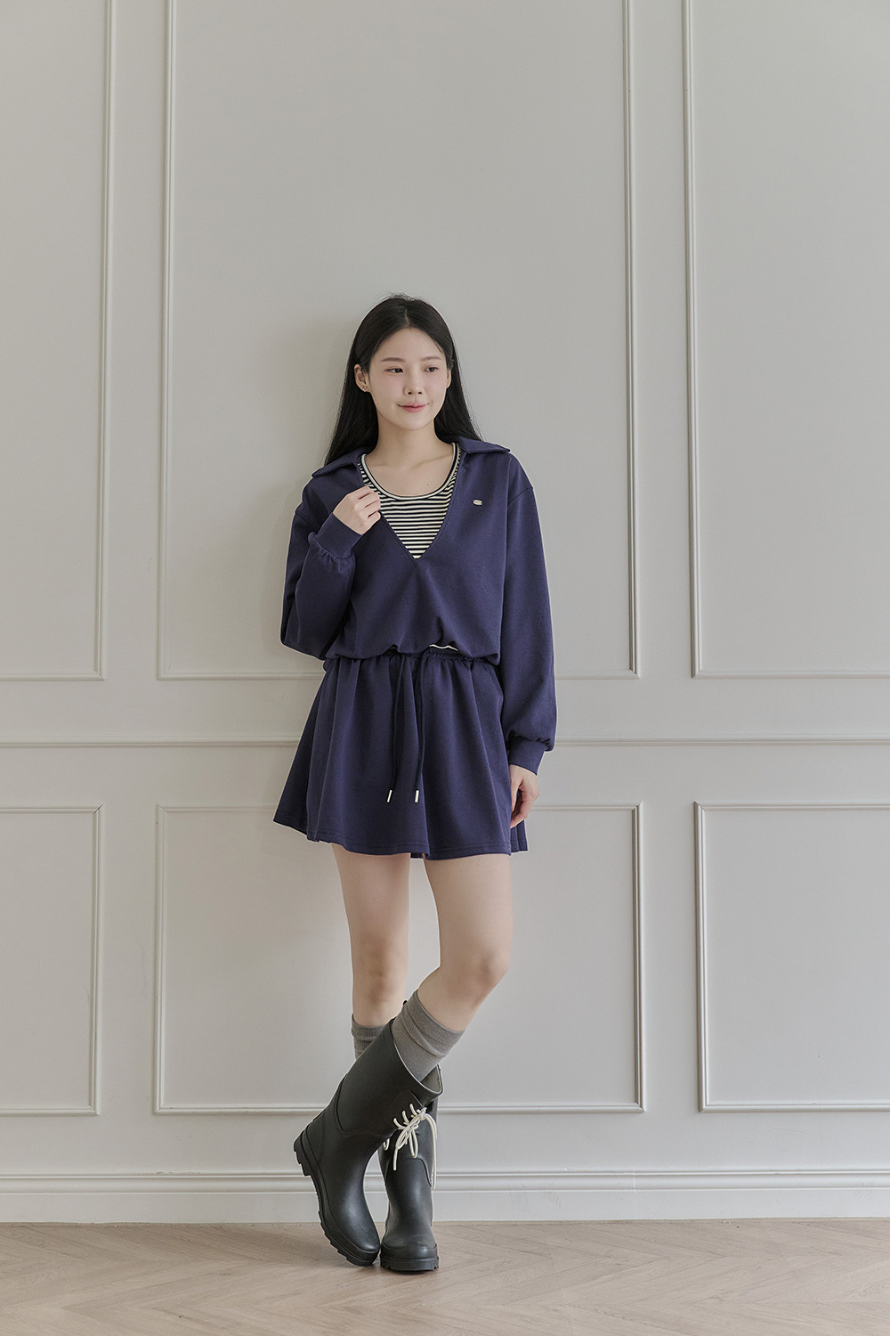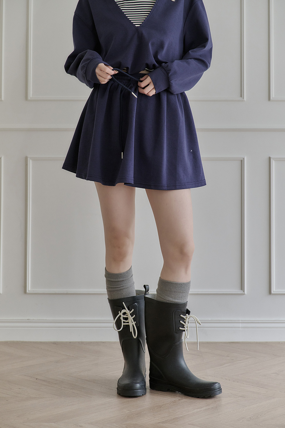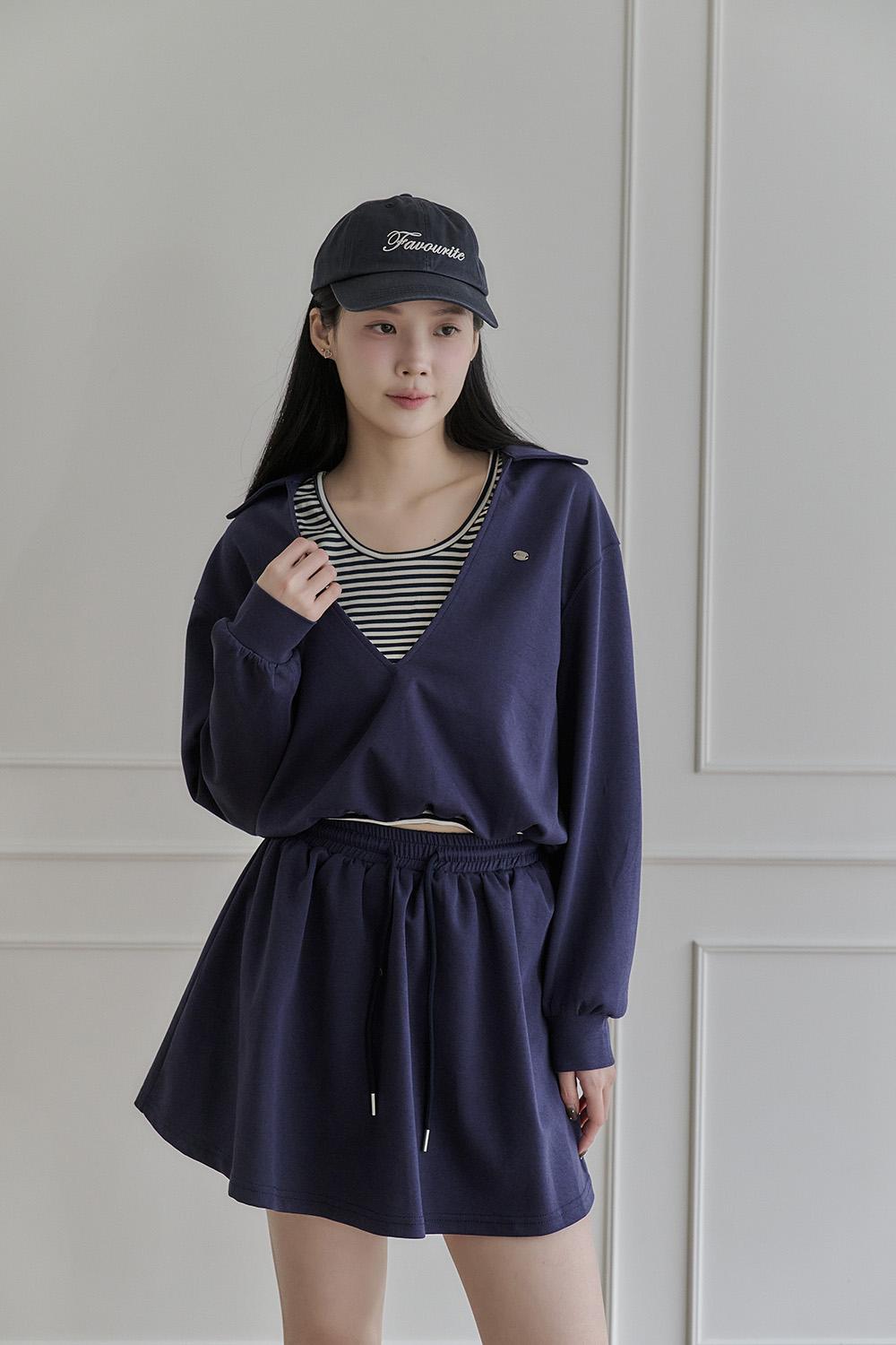 自在鬆弛感 假兩件式大V翻領上衣+短褲裙套裝