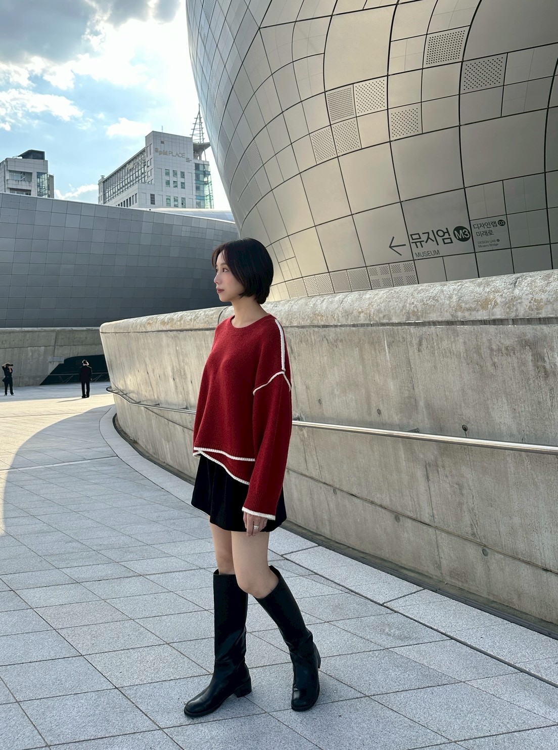 HEALER Made新色寵愛女孩 滾邊寬鬆針織毛衣