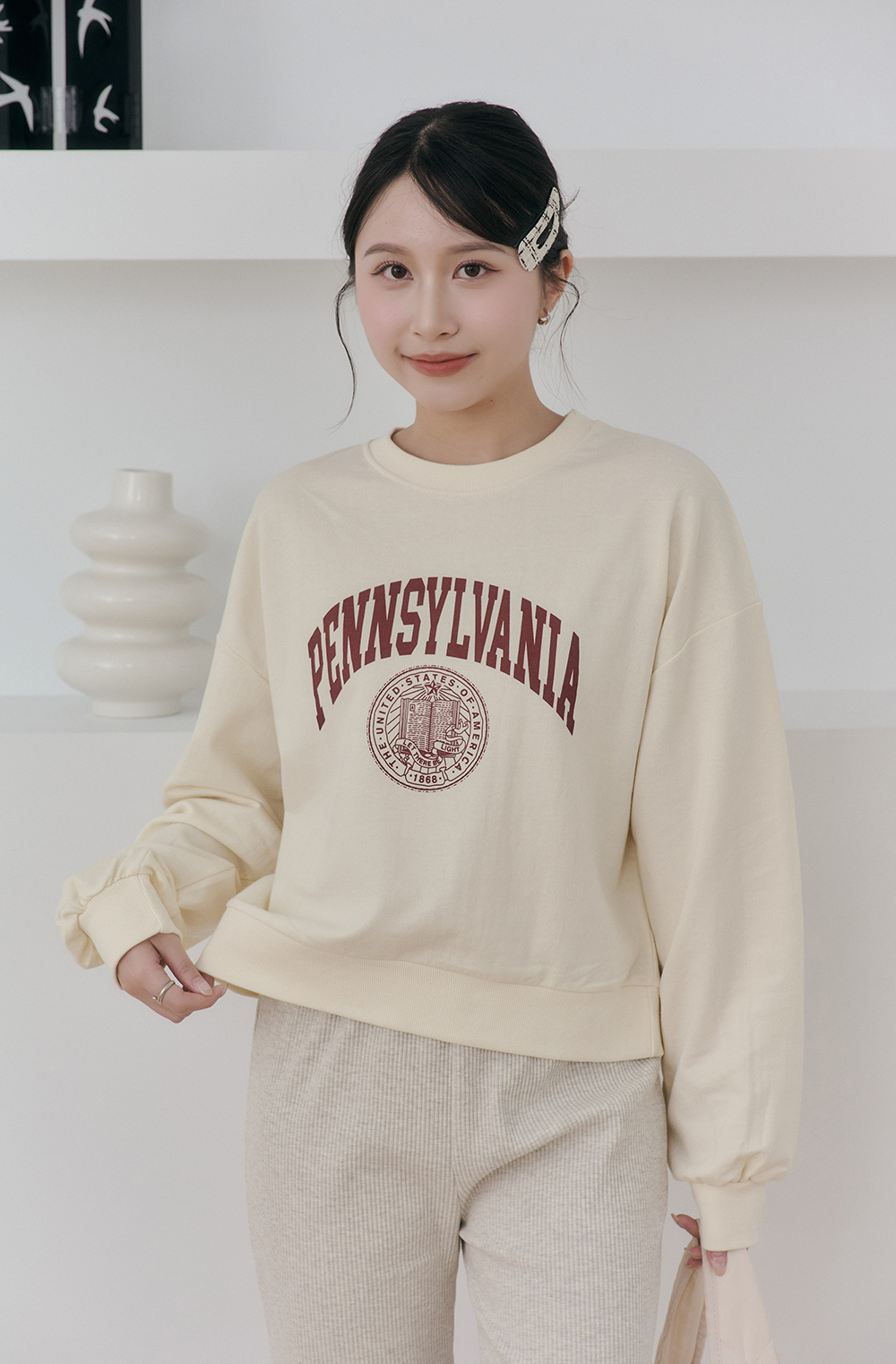 秋日祈禱 美式文字印花大學T