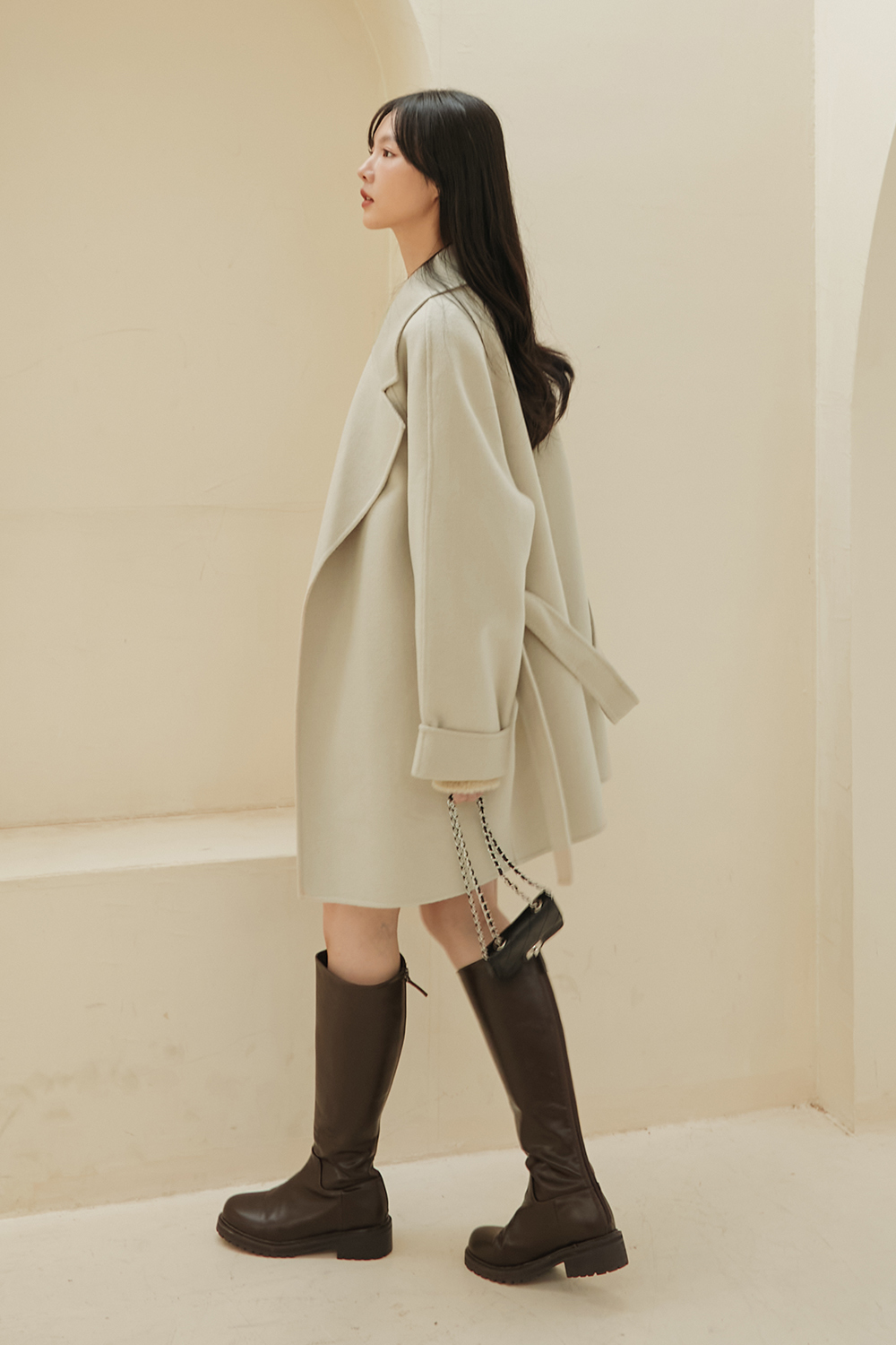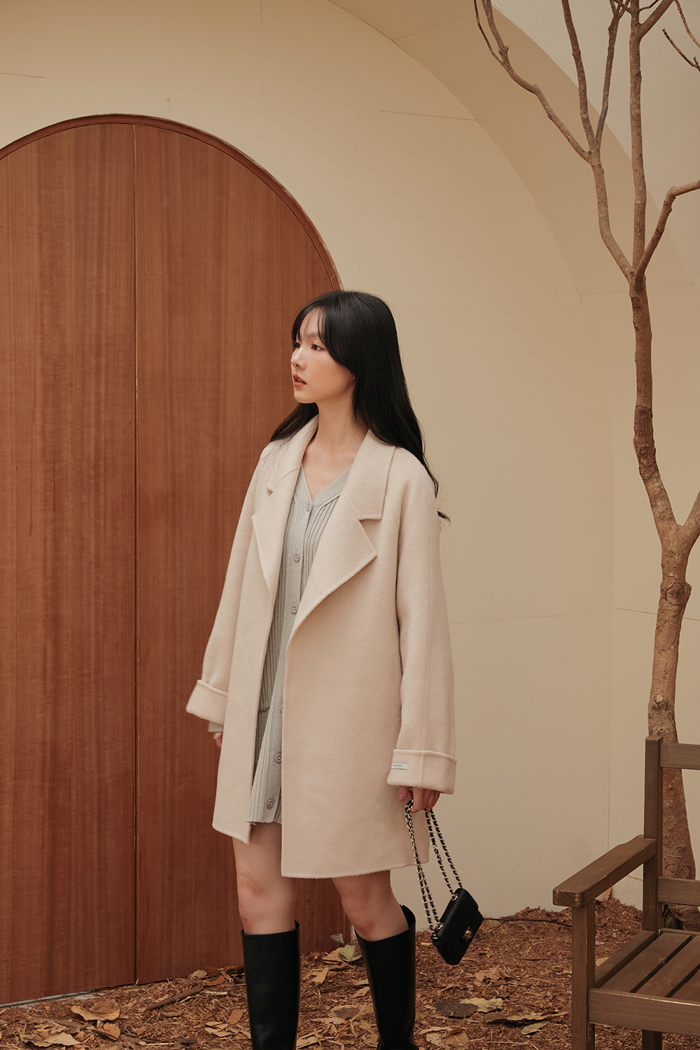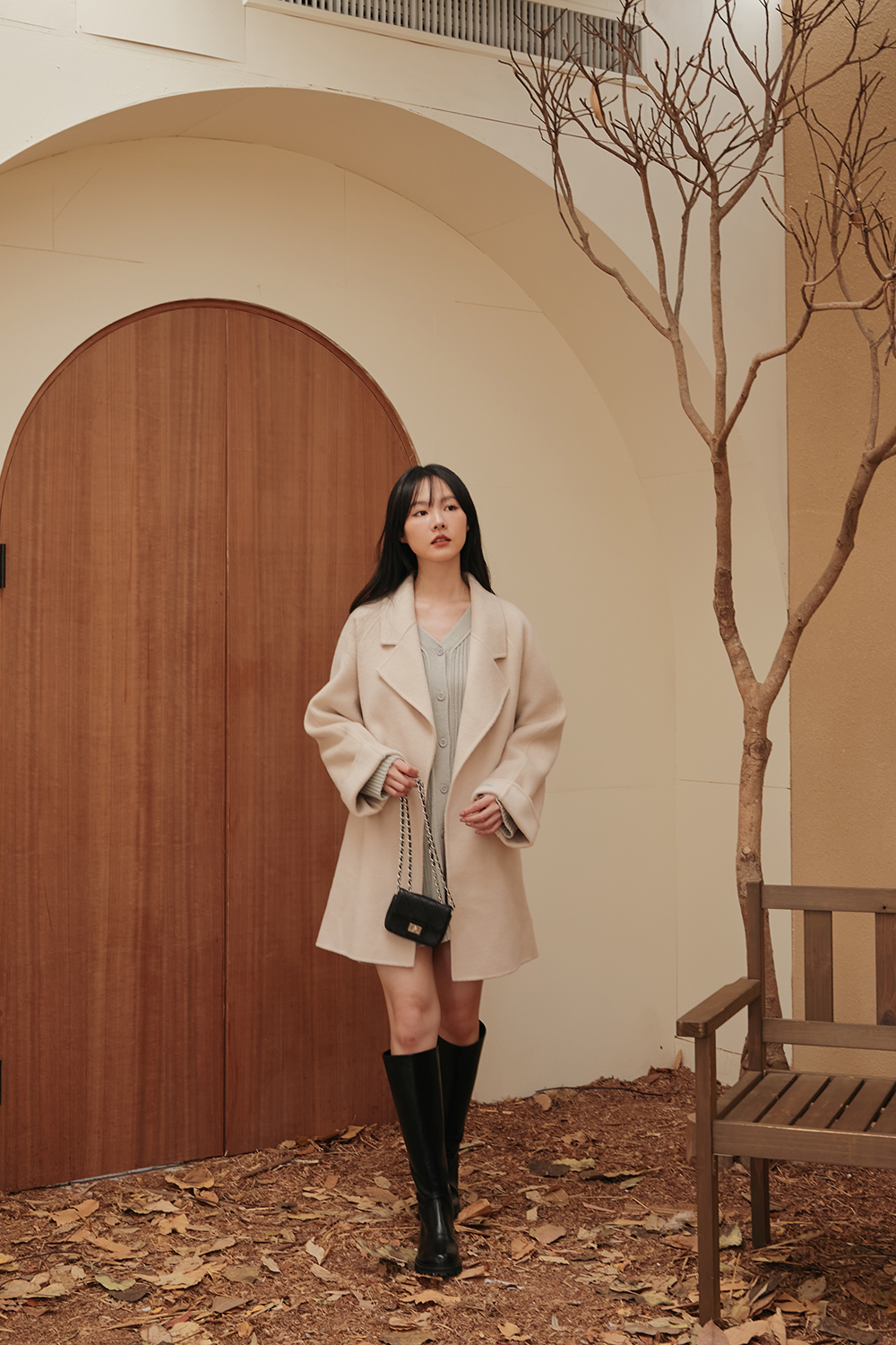 HEALER Made 浪漫邂逅 100%手工羊毛翻領中長版大衣