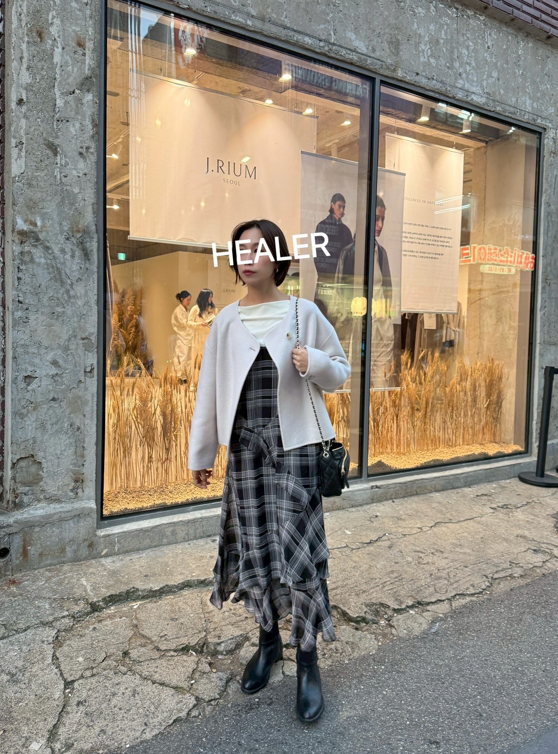 HEALER Made 旋轉木馬 格紋不規則雪紡細肩帶洋裝