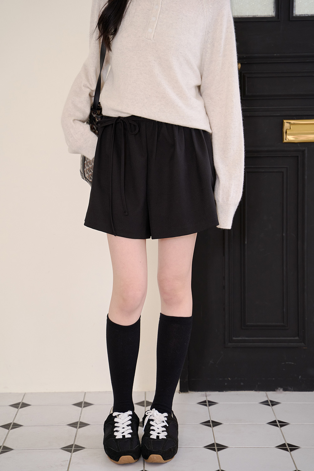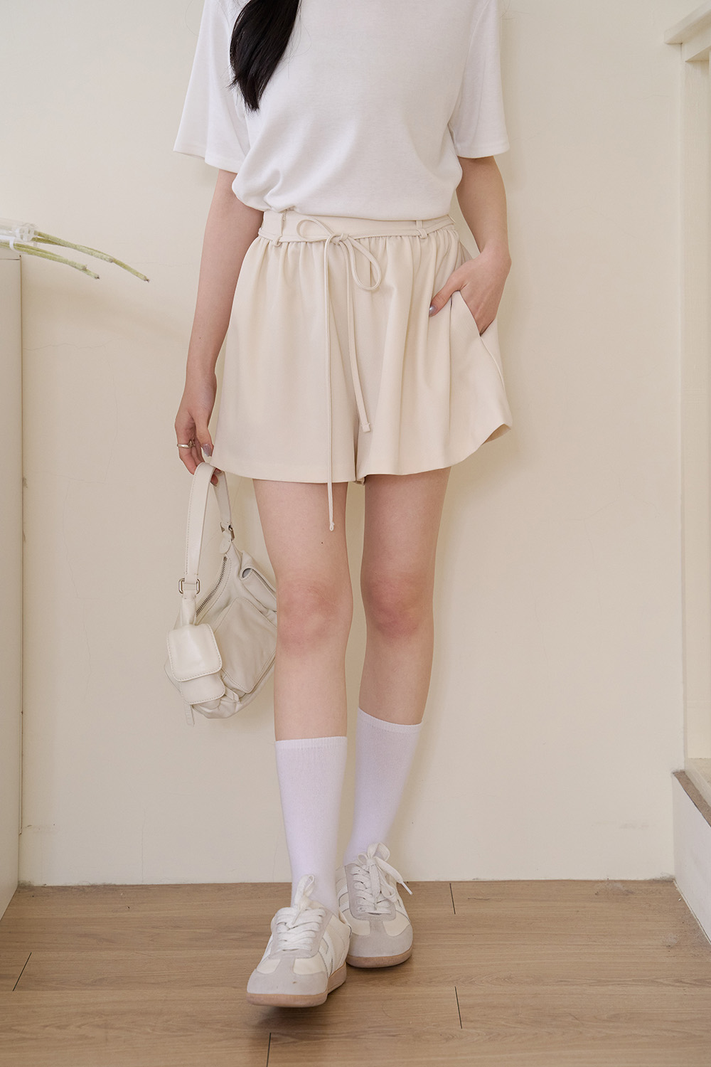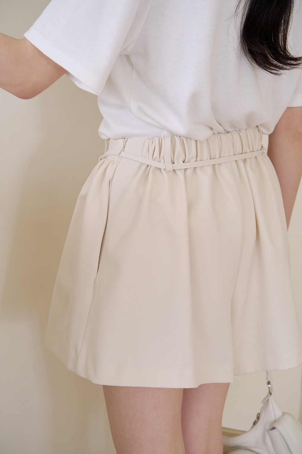 初見 細褶綁帶寬口短褲