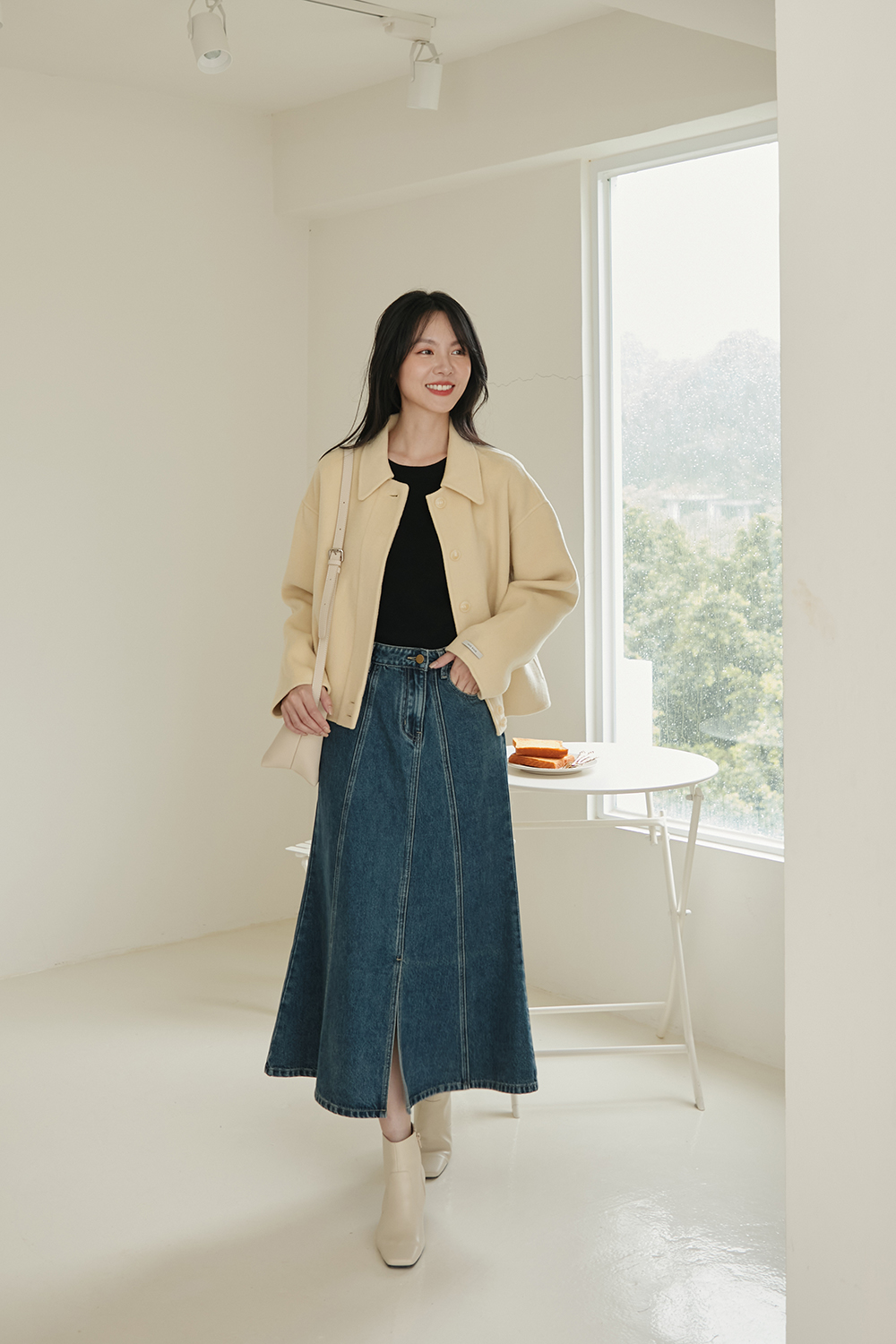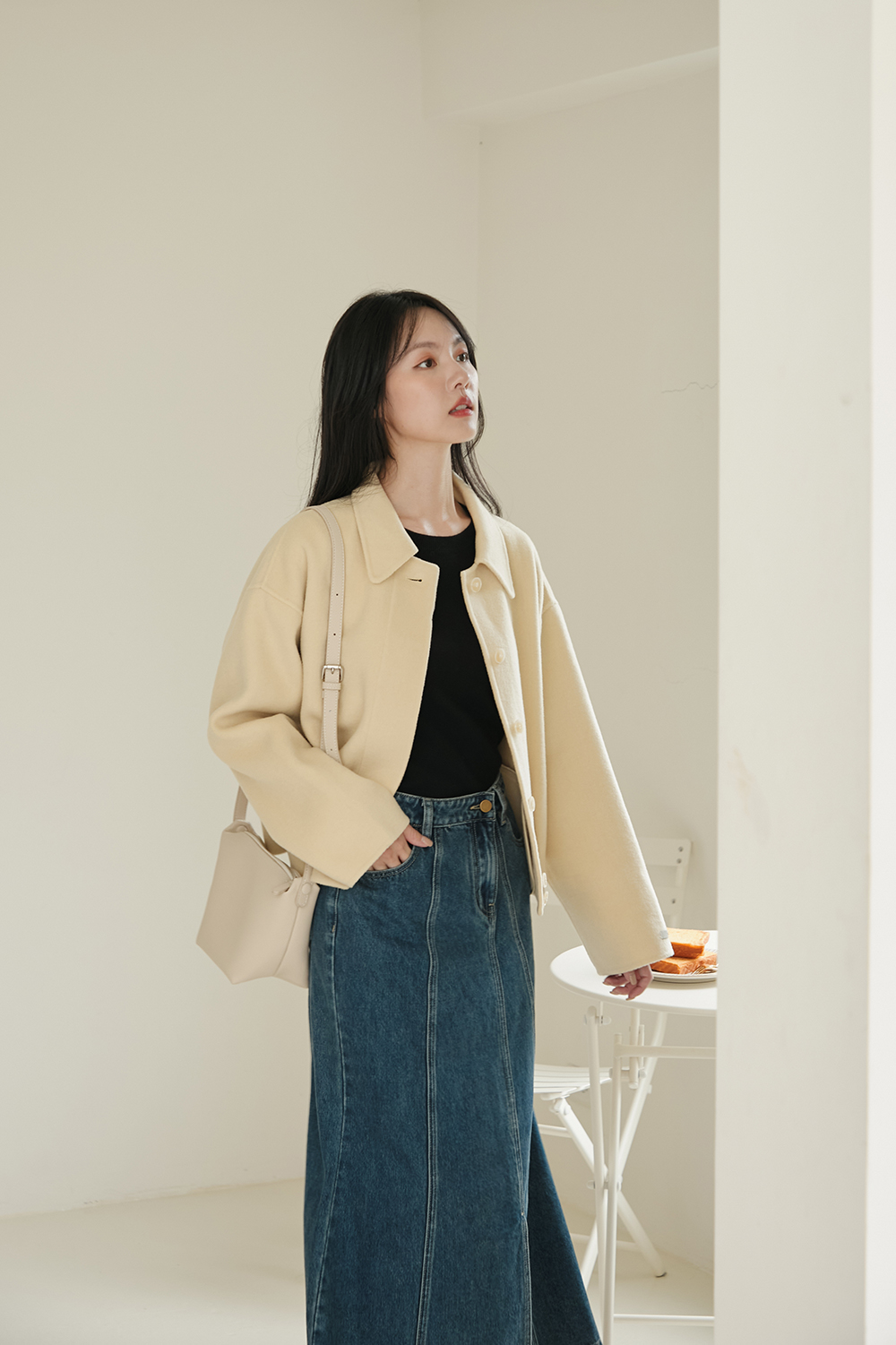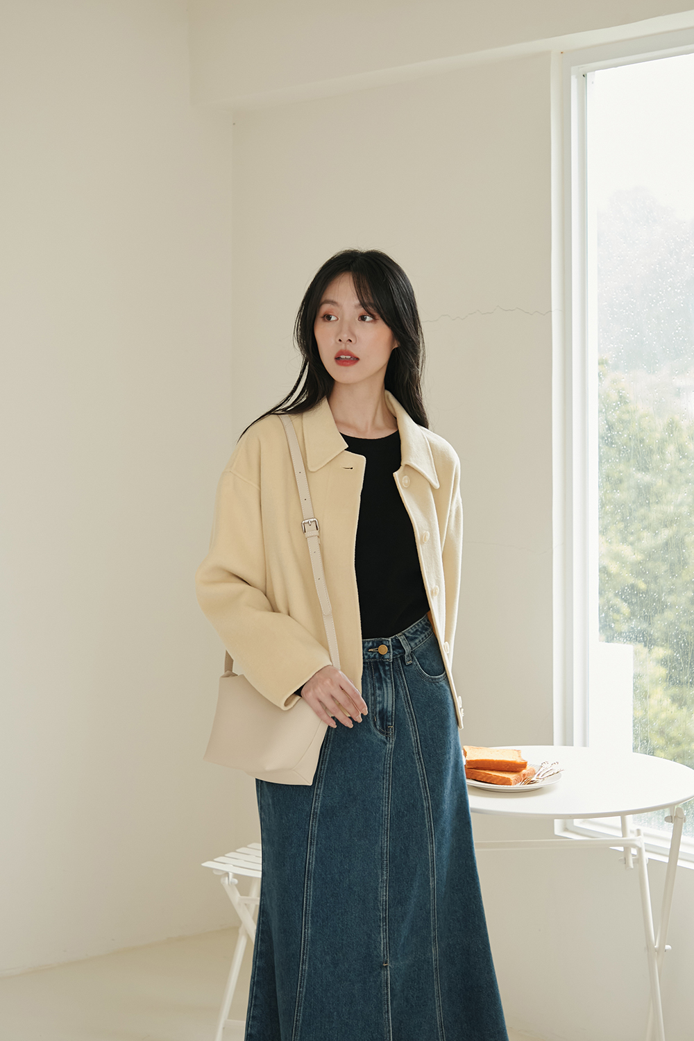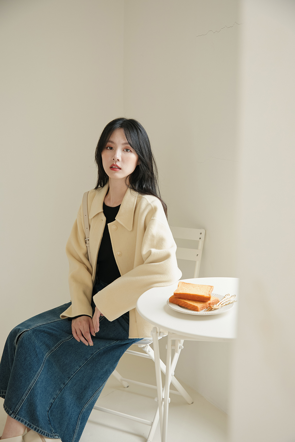 穿上短版羊毛外更顯好比例,也是肉肉女孩友善款哦!